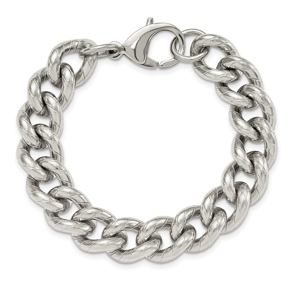Chisel Stainless Steel Polished and Textured 14.5mm 8 inch Curb Bracelet