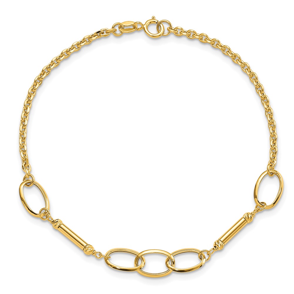 14K Polished Bars and Oval Links 7.5 inch Bracelet