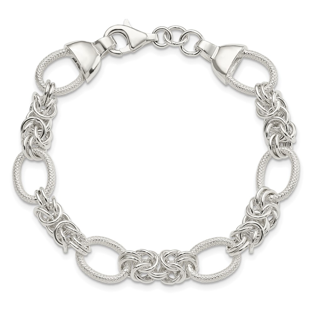 Sterling Silver Polished and Texture Fancy Link 7.5in Bracelet