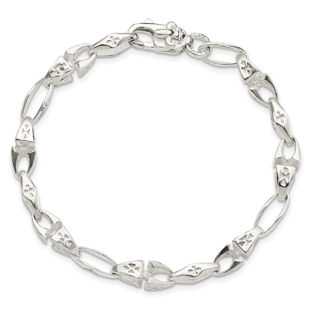 Sterling Silver Polished Cross w/Fleur de Lis Clasp Bracelet