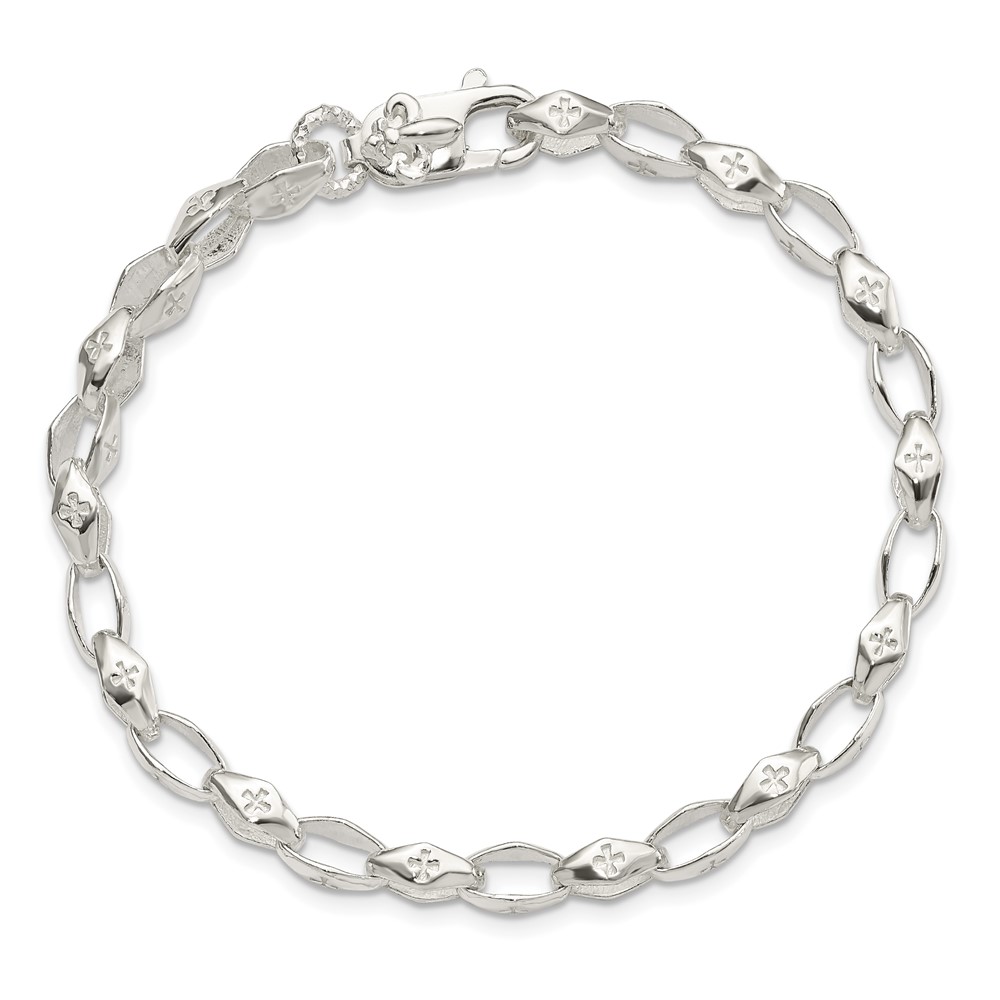Sterling Silver Polished Cross w/Fleur de Lis Clasp Bracelet