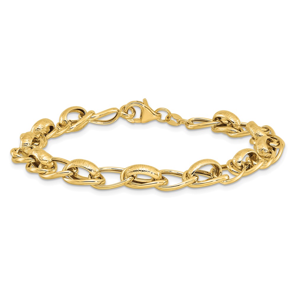 14k Polished and Textured 7mm Fancy Link 7.5 inch Bracelet