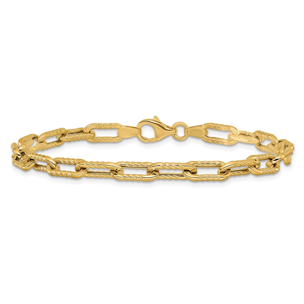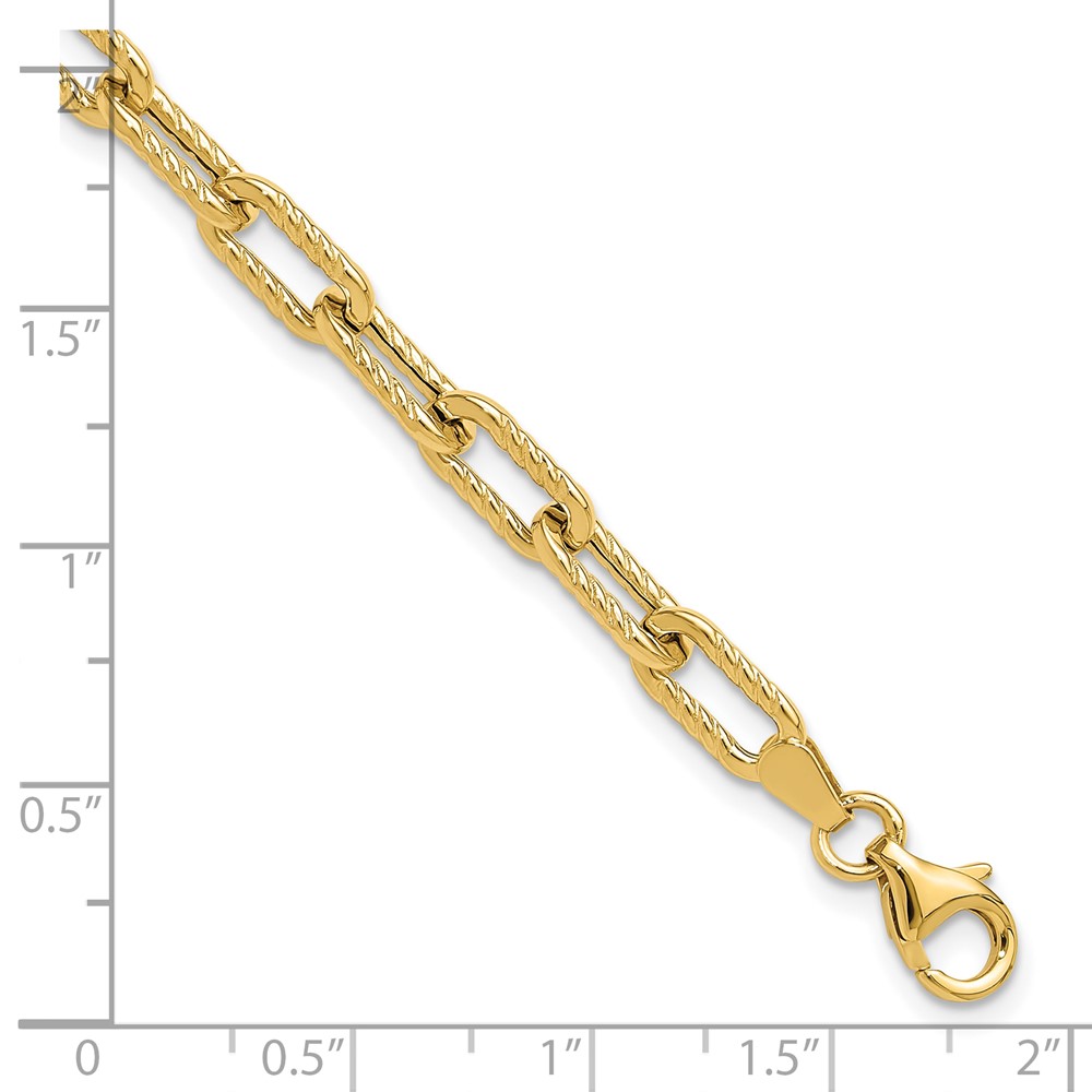 14K Polished and Textured 5mm Fancy Cable Link 7.5 inch Bracelet