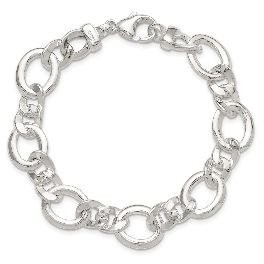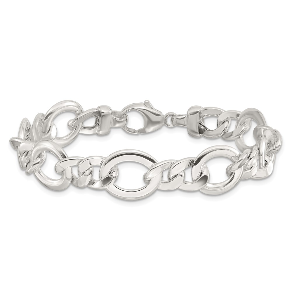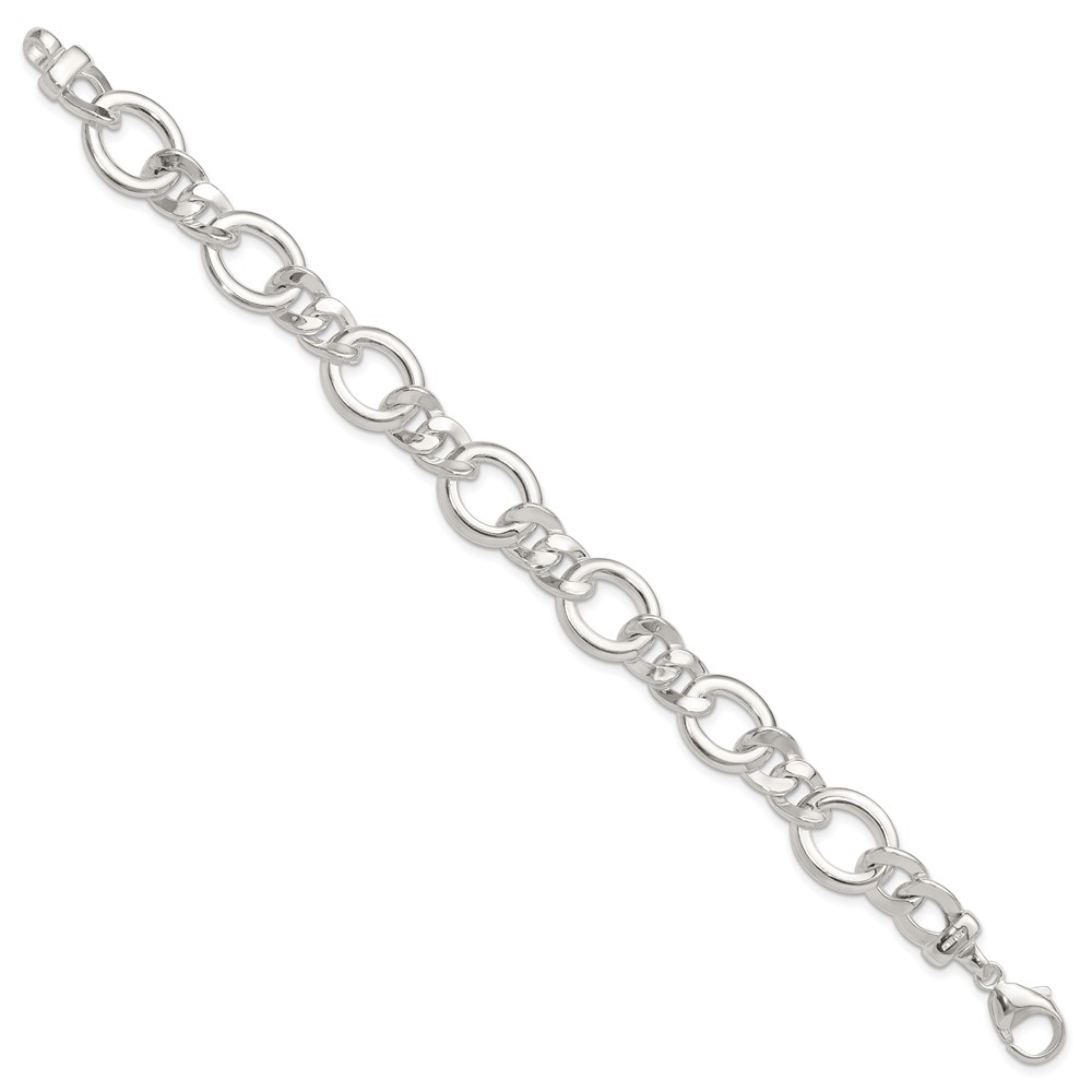 Sterling Silver Polished Flat Fancy Link Bracelet