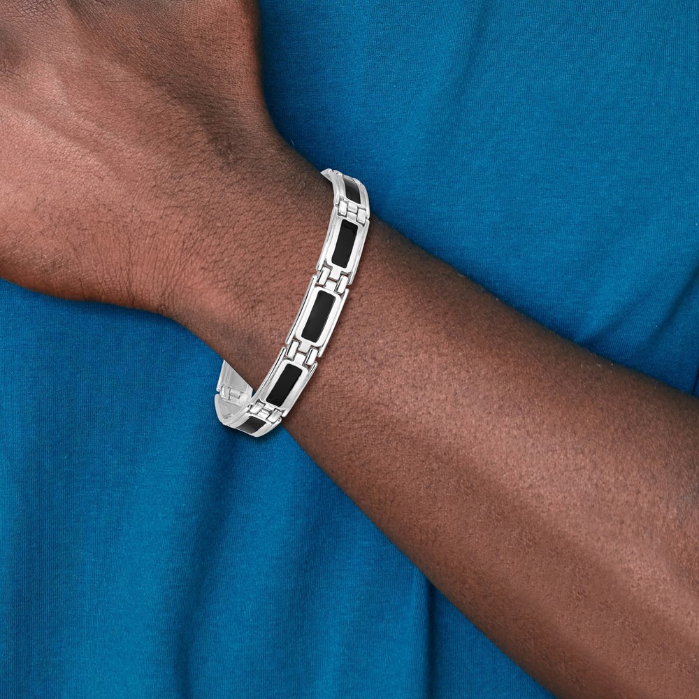 Sterling Silver Rhodium-plated Black Enamel Link Men's 8in Bracelet