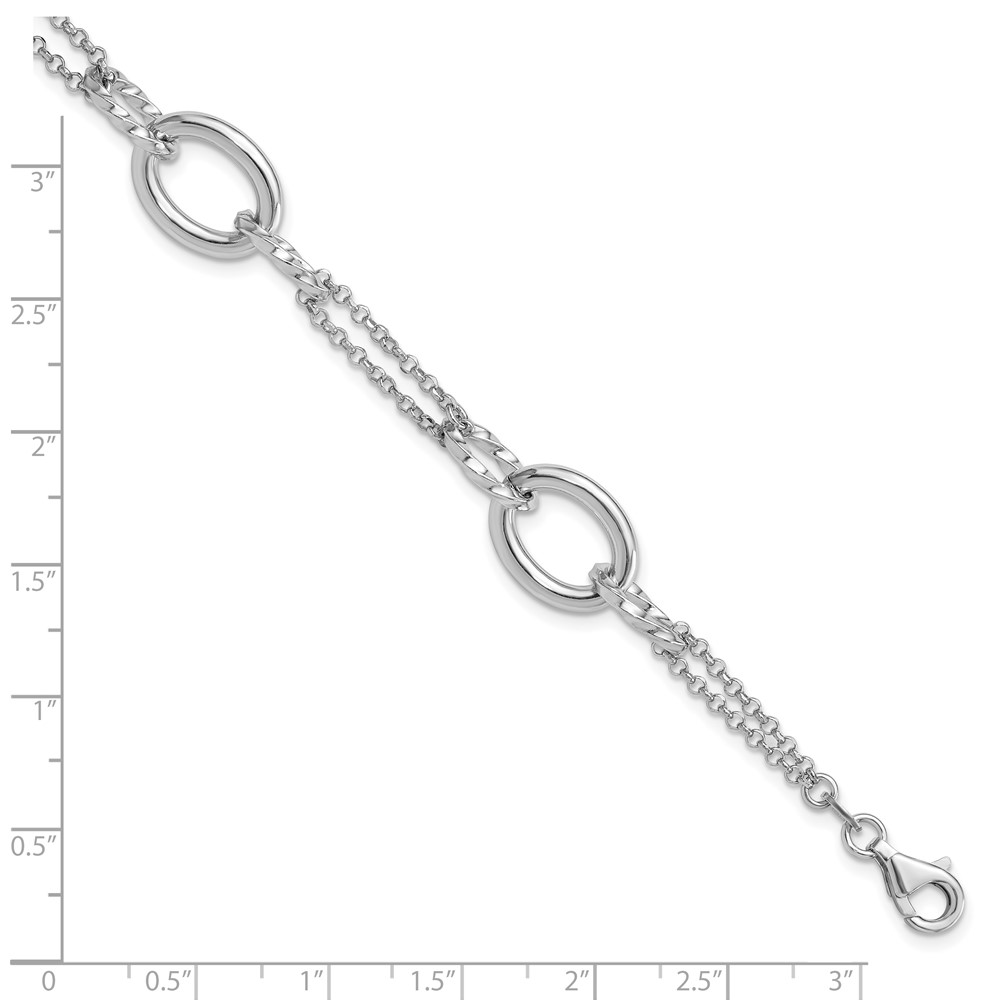Sterling Silver Rhodium-plated 7in w/1in ext Interlocking Circles Bracelet