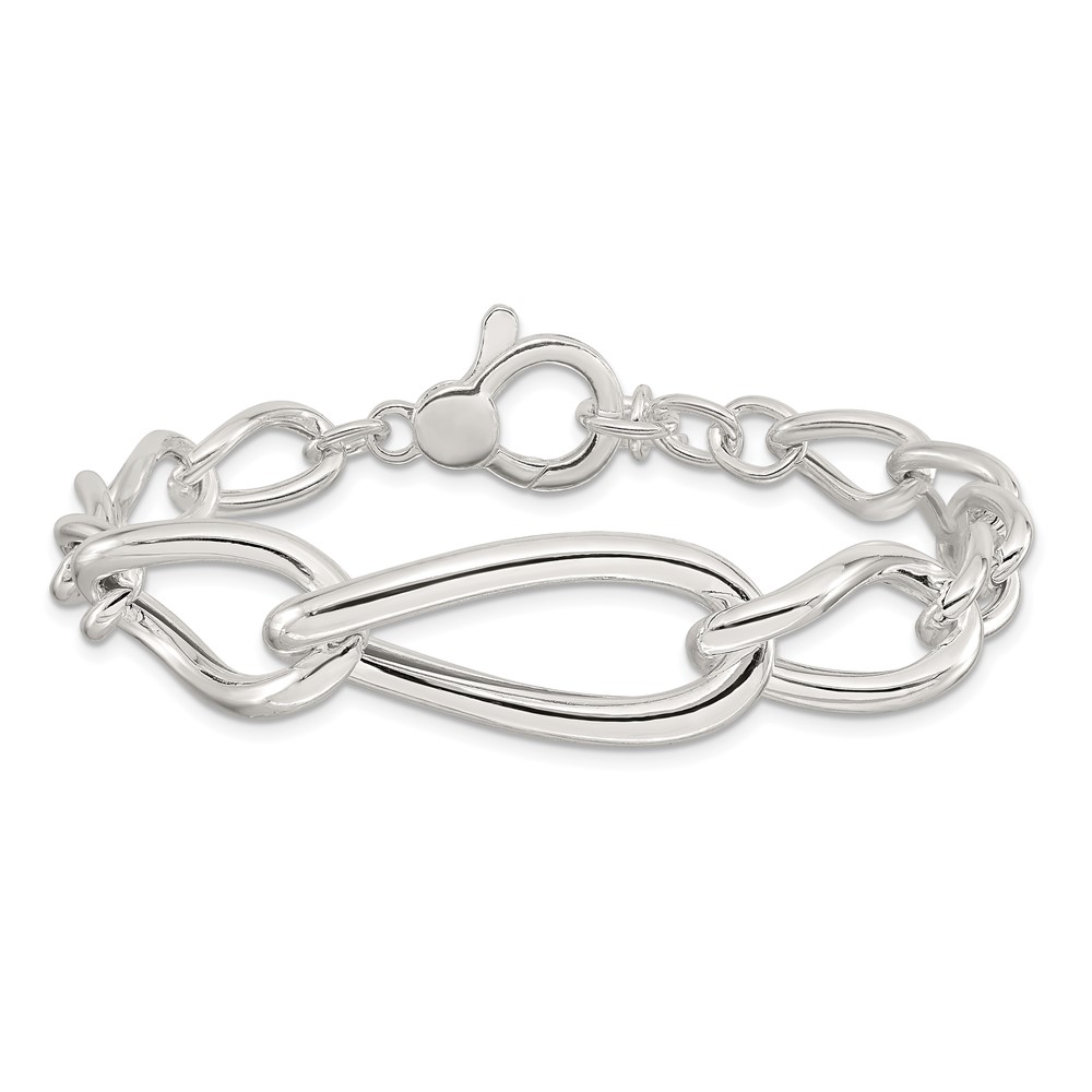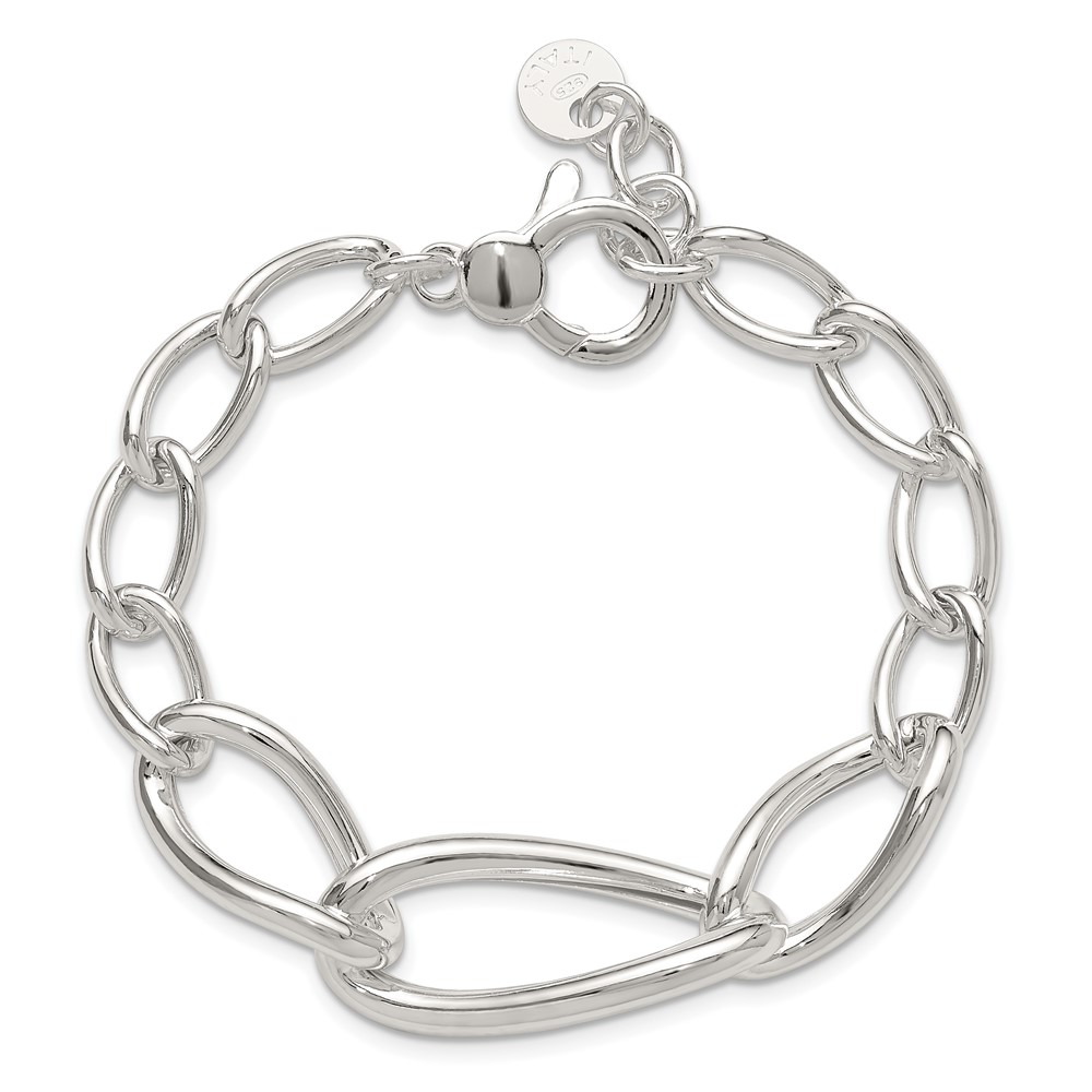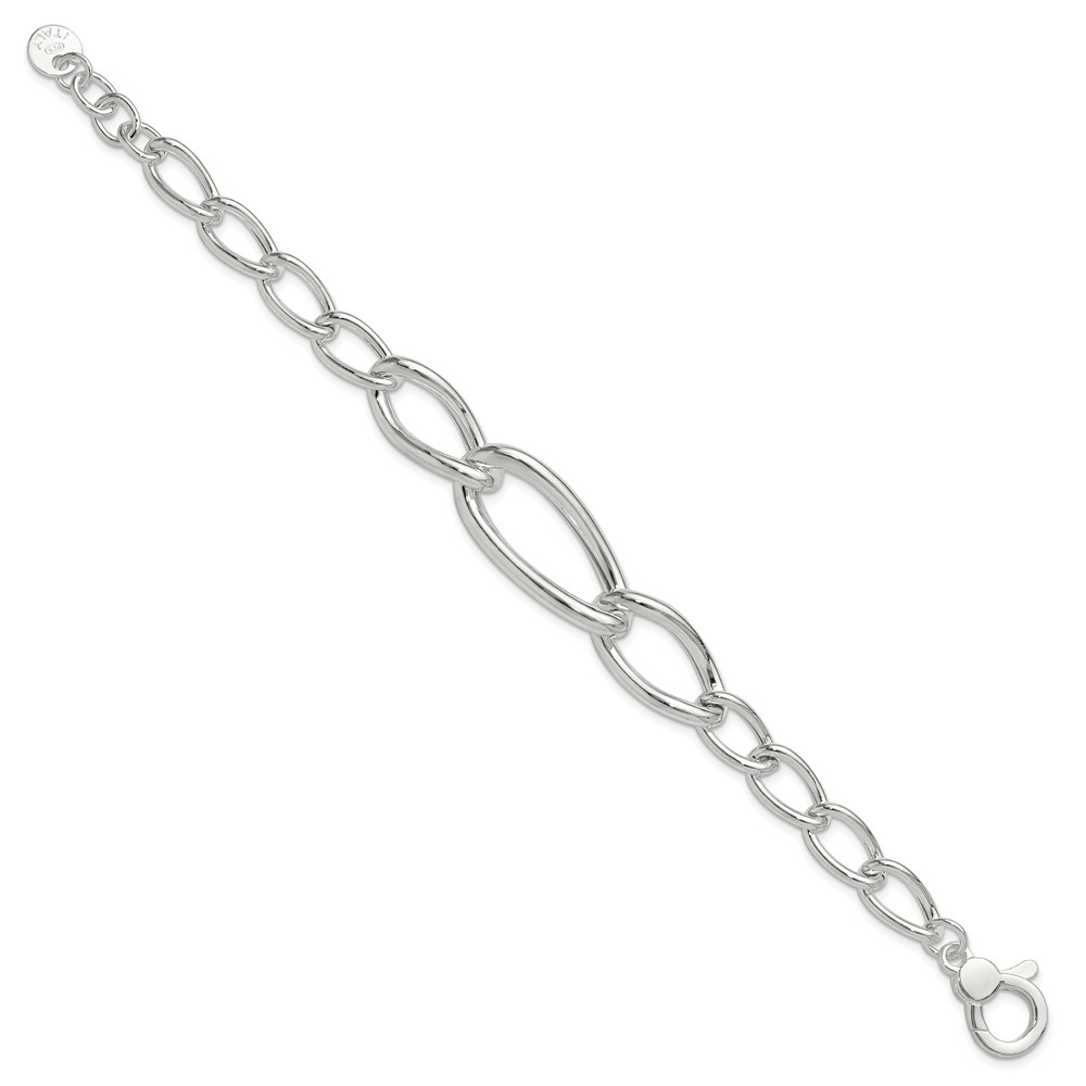 Sterling Silver Polished and Hollow Fancy Link w/.25 in ext Bracelet