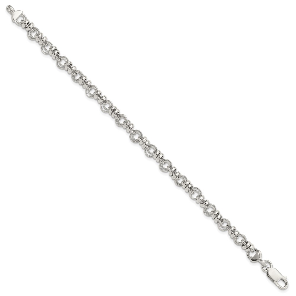 Sterling Silver Rhodium-plated Polished and Textured Link 7.5in Bracelet