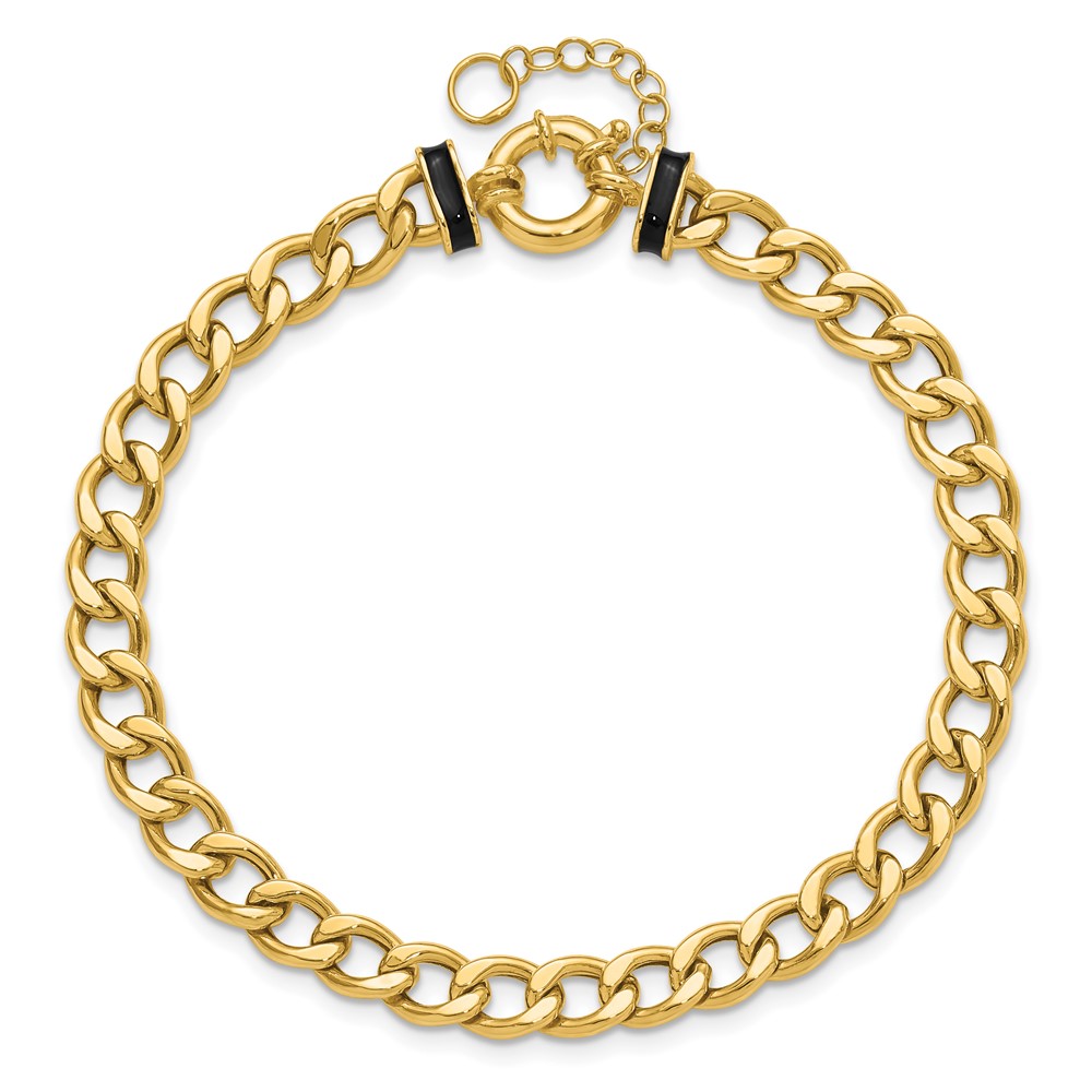 Leslie's 10K Polished with Black Enamel Flat Oval Link w/1in ext. Bracelet