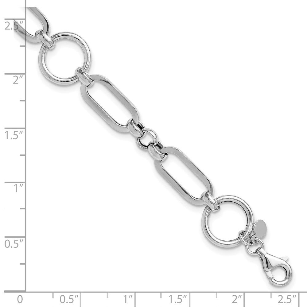 Leslie's Sterling Silver RH-plated Polished Fancy Link w/ 1in ext. Bracelet