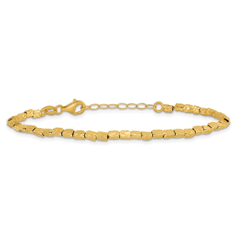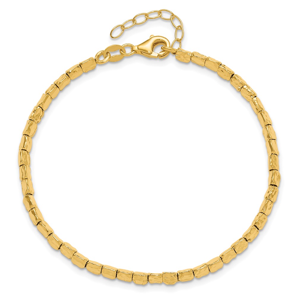 Leslie's Sterling Silver Gold-plated Polished/Hammered w/1in ext. Bracelet