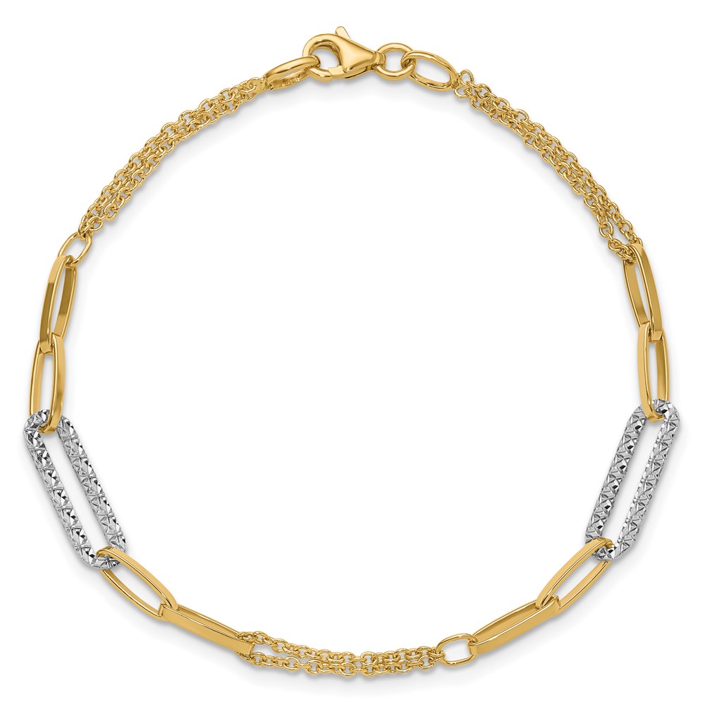 Leslie's 14K Two-tone Polished and Diamond-cut Fancy Link Bracelet