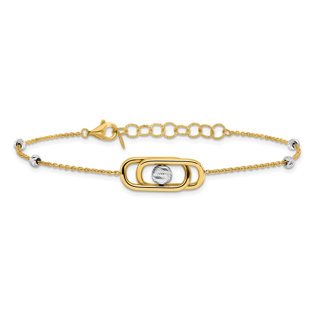 Leslie's 14K Two-tone Polished / Dia-cut Fancy with 1in ext. Bracelet