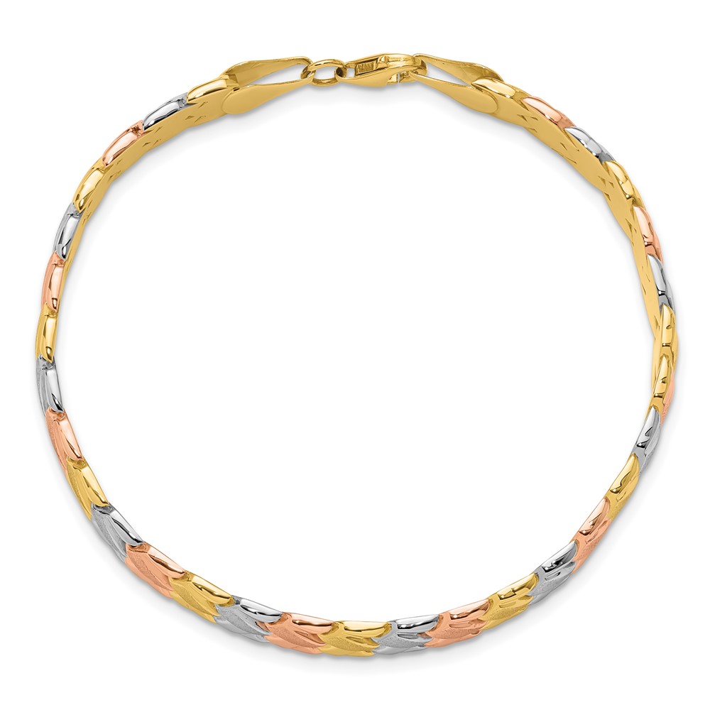 Leslie's 10K Two-tone w/Wht Rhodium Polished/Satin Fancy Link Bracelet