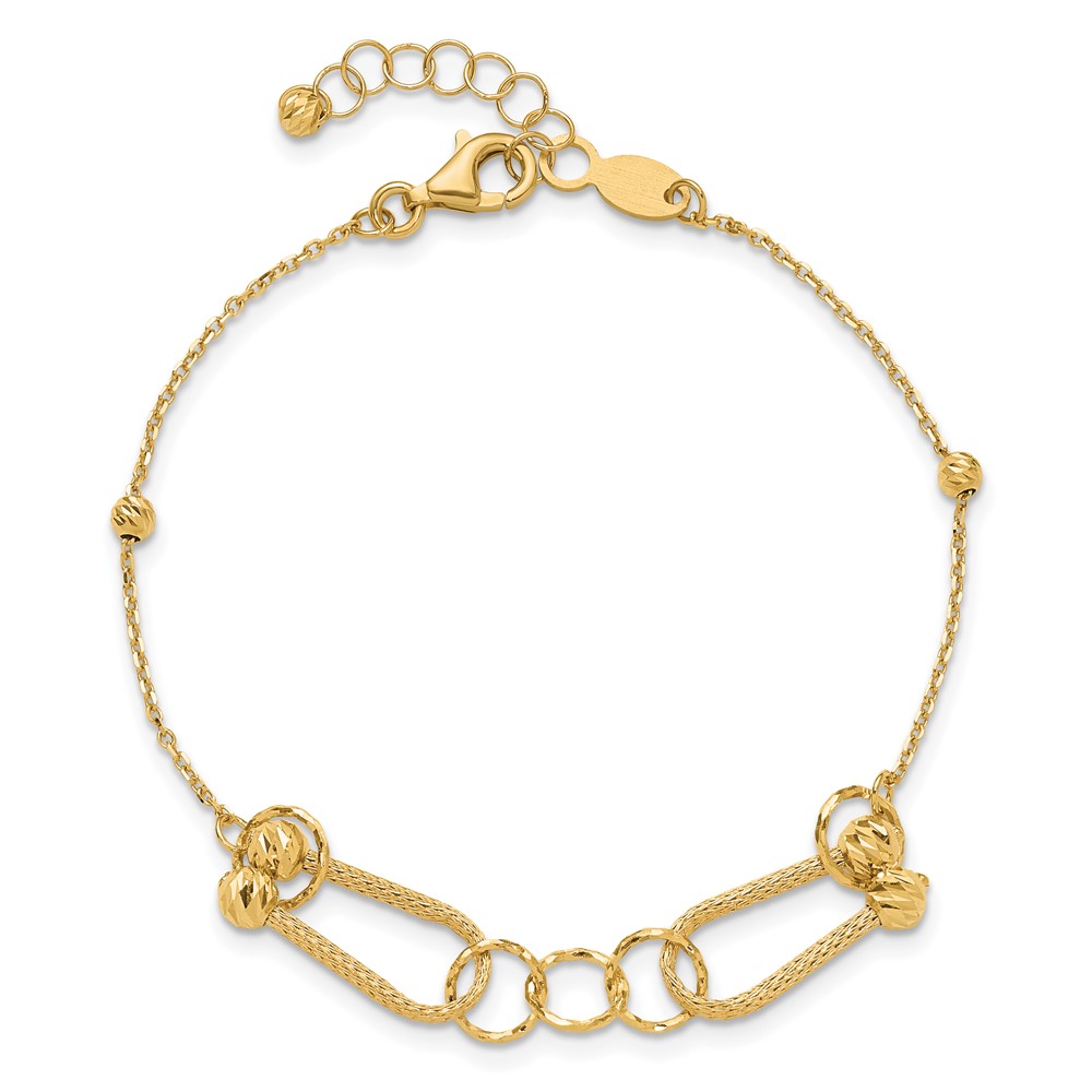 Leslie's 14K Polished and Diamond-cut Fancy Link with 1in ext. Bracelet