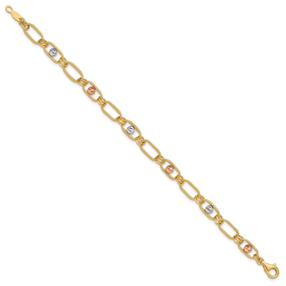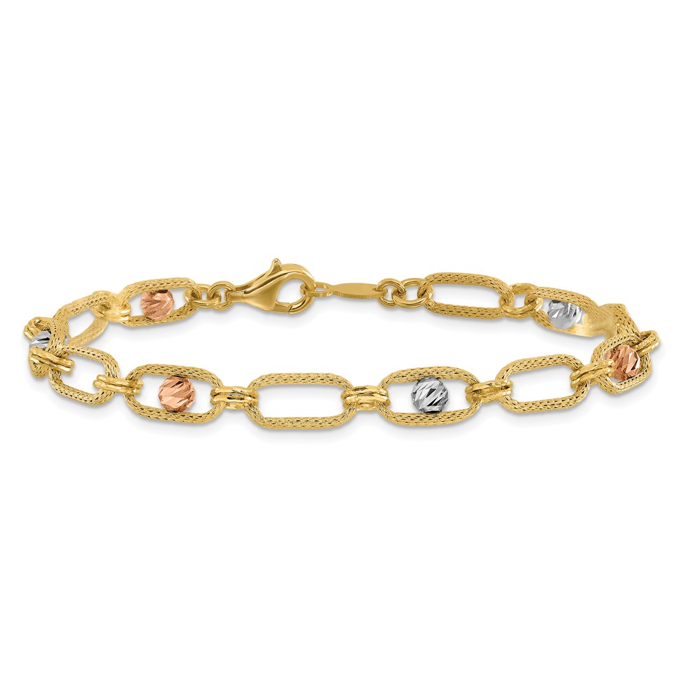 Leslie's 14K Tri-color Polished/Textured/Dia-cut Fancy Link Bracelet