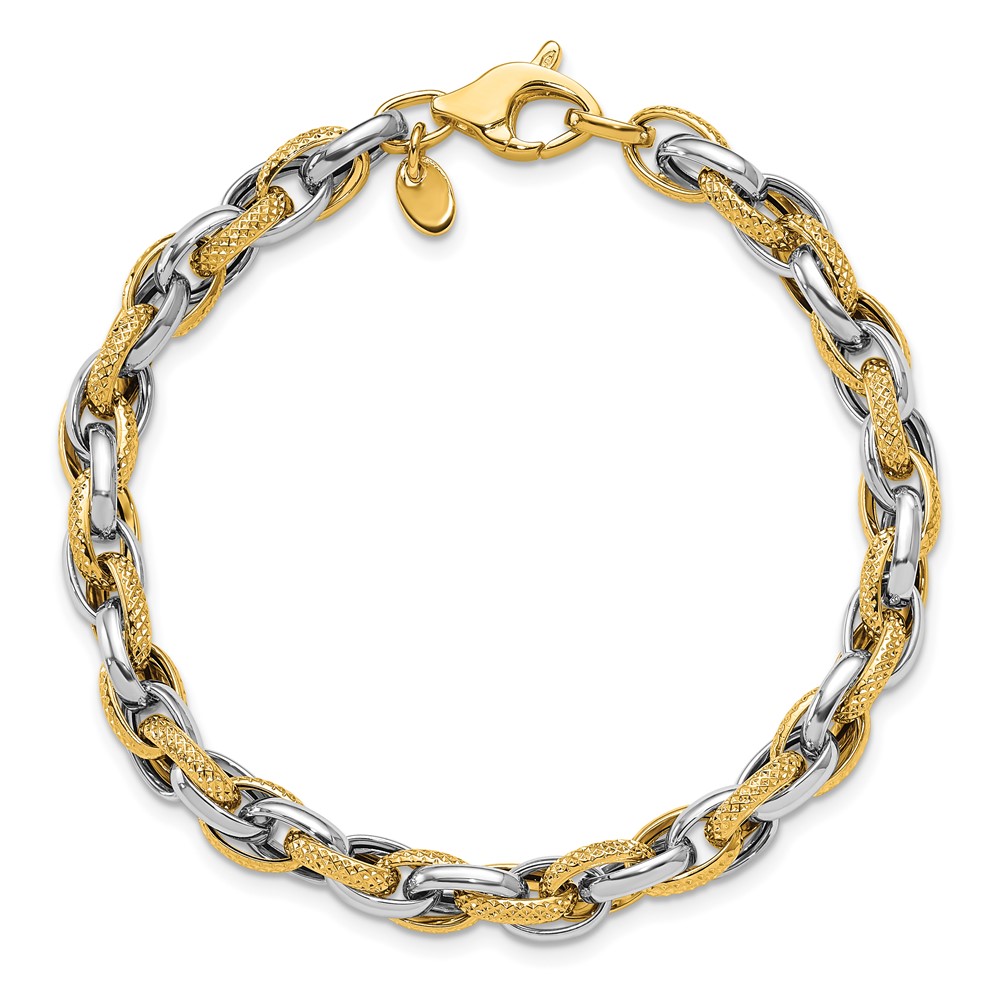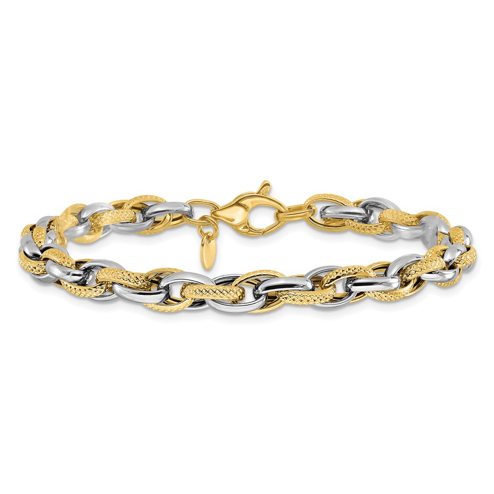 Leslie's 14K Two-tone Polished and Textured Fancy Link Bracelet
