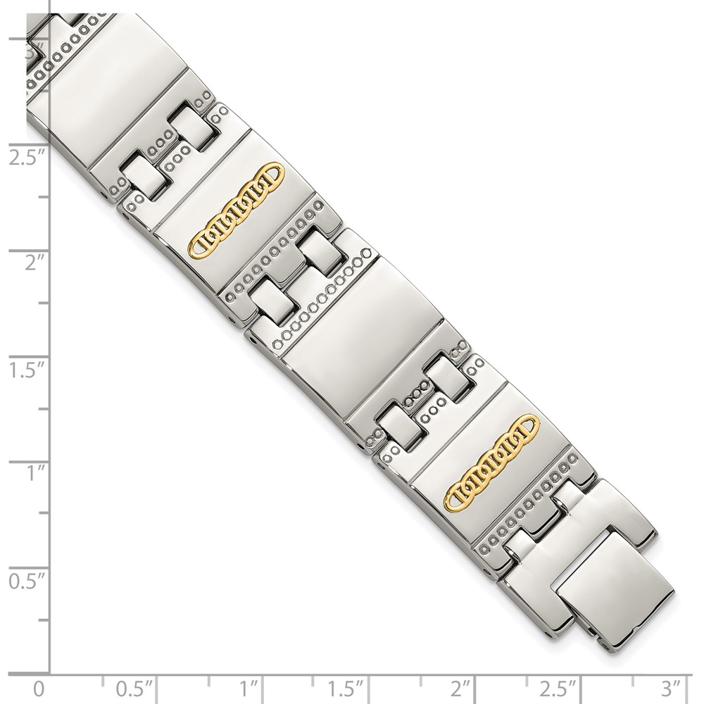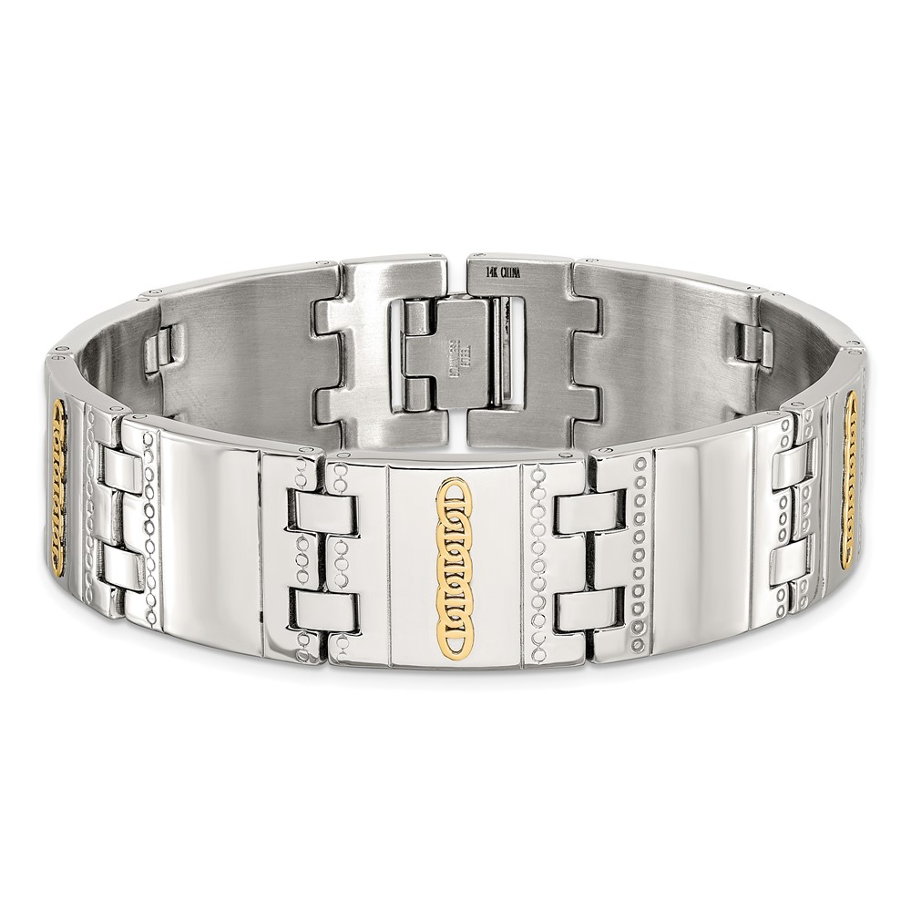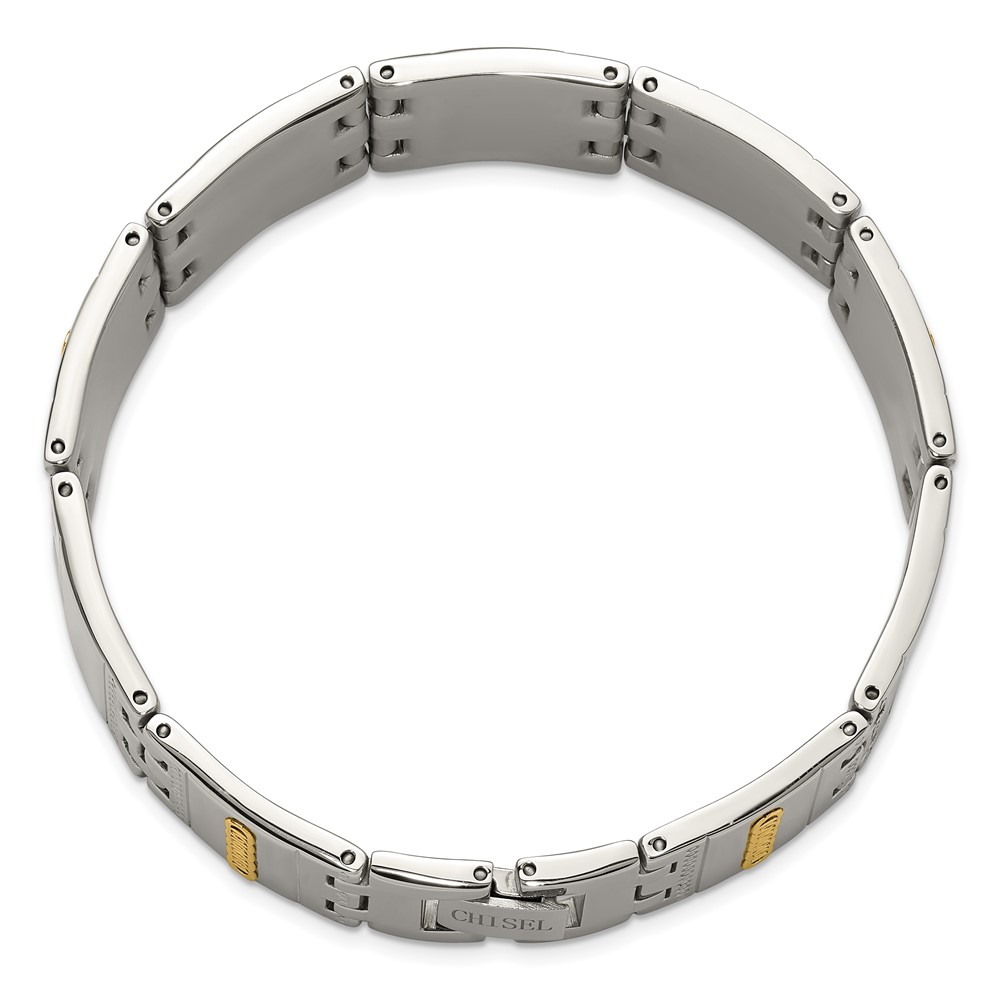 Chisel Stainless Steel Polished and Textured with 14K Gold Accent 8.5 inch Link Bracelet