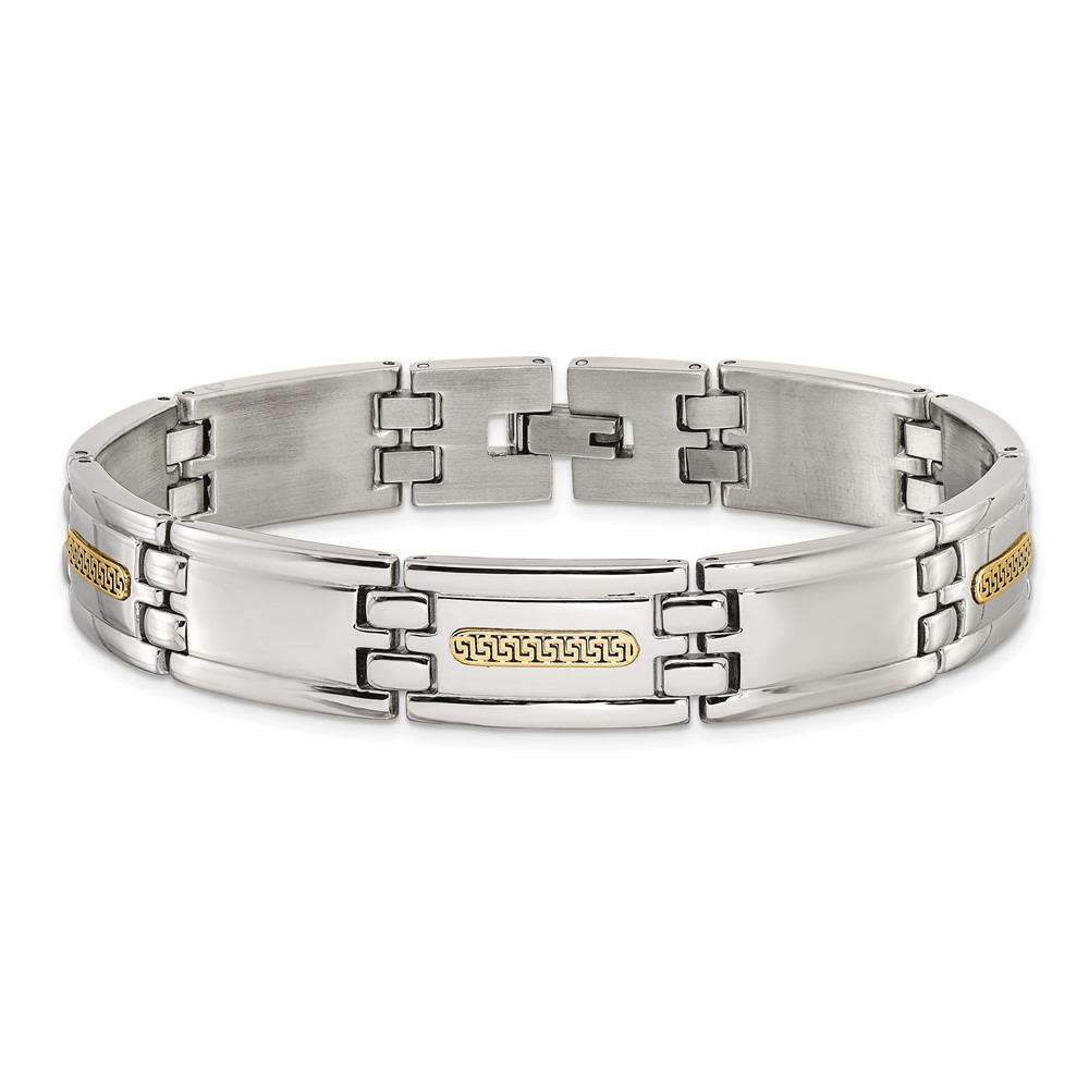 Chisel Stainless Steel Polished with 14K Gold Accent 8.75 inch Link Bracelet