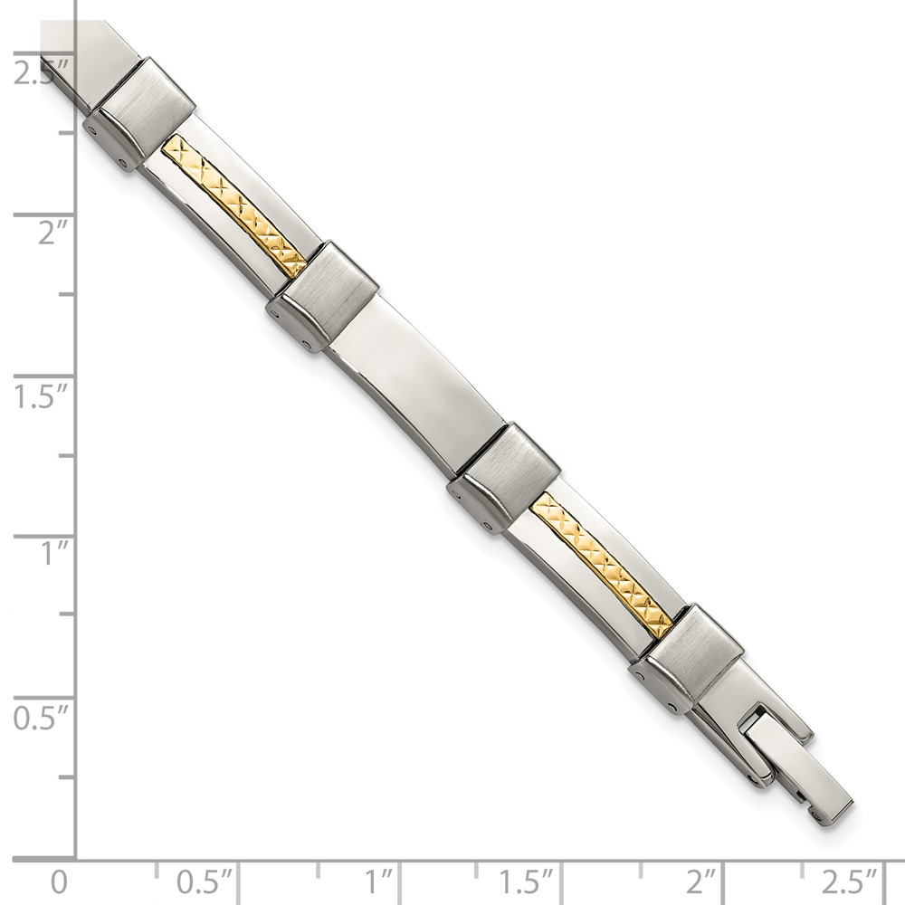 Chisel Stainless Steel Brushed and Polished with Diamond-cut 14K Gold Accent 8.25 inch Link Bracelet