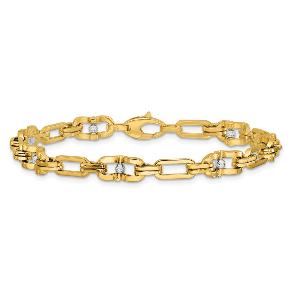 Leslie's 14K w/Wht RH Polished D/C Moveable Beaded Link Bracelet