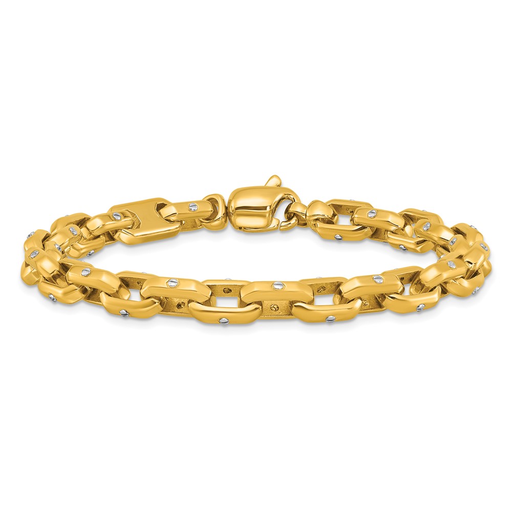 Herco 14K with White Rhodium Polished 7.7mm Fancy Link 8.5 Inch Bracelet