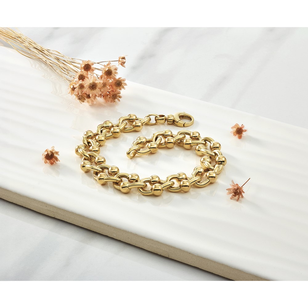 Herco 14K Polished and Beaded Elongated Curb Link 7.75in Bracelet