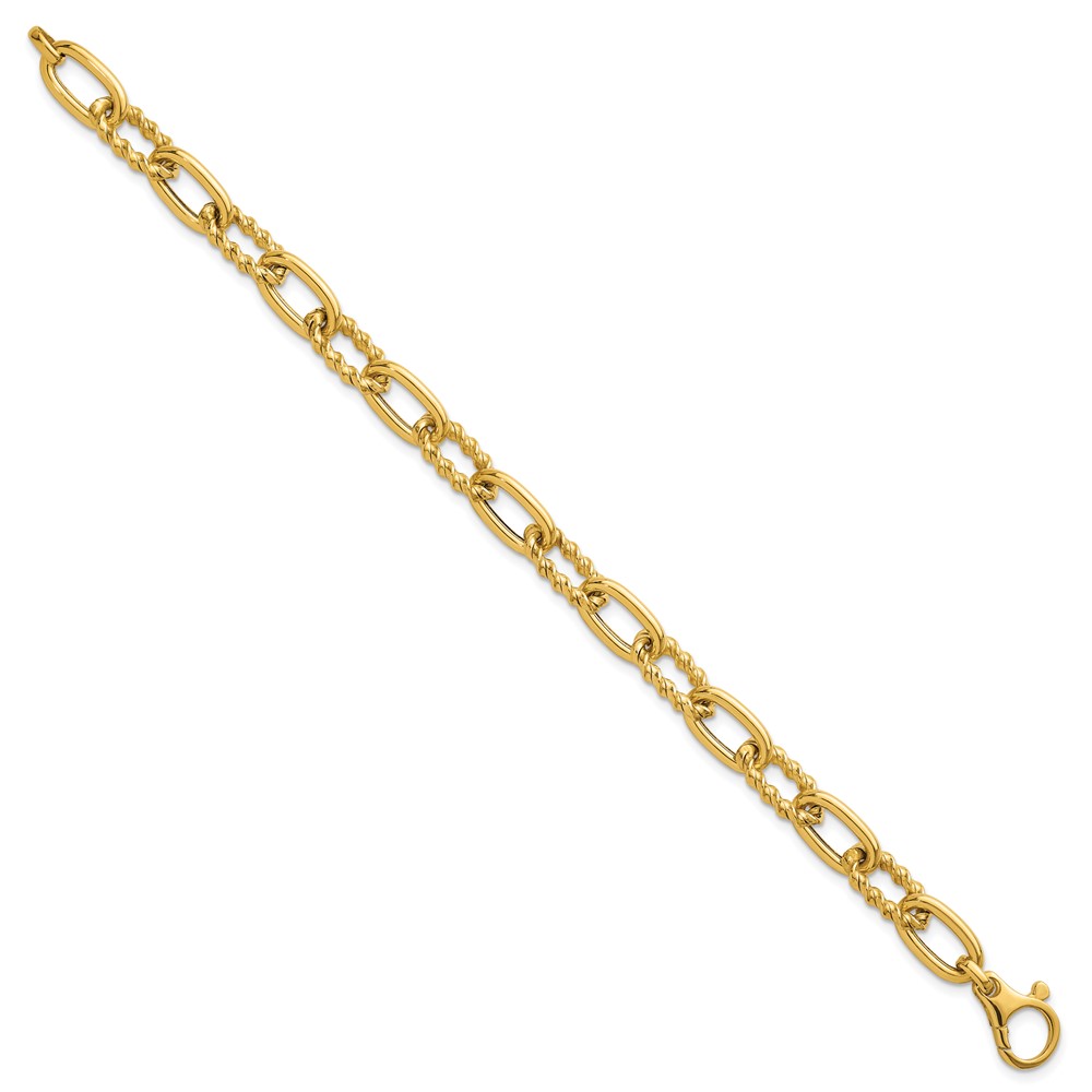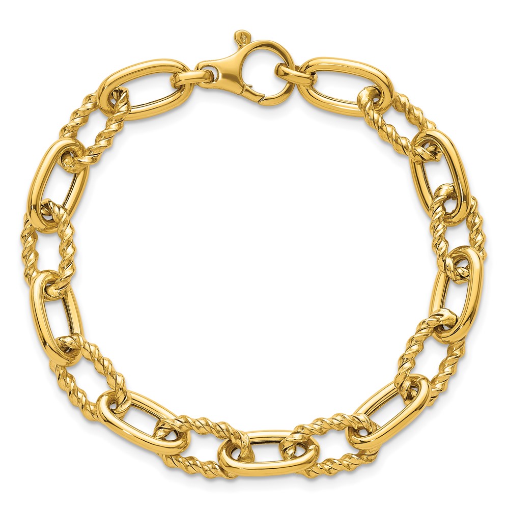 14K Polished 8mm Fancy and Twisted Oval Link 7.5 inch Bracelet