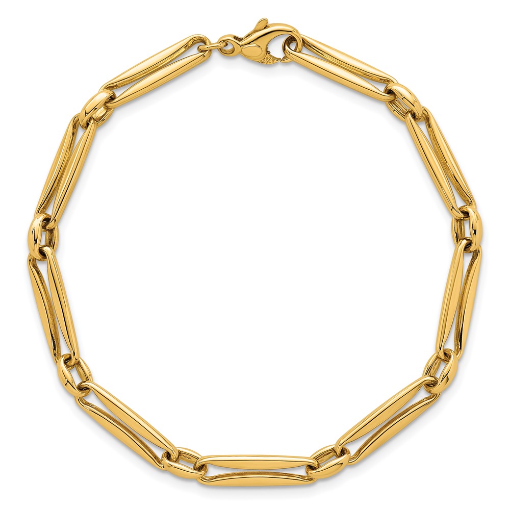 14k Polished 5mm Fancy Long and Round Link 7.5 inch Bracelet