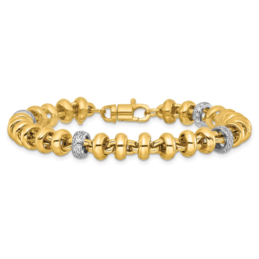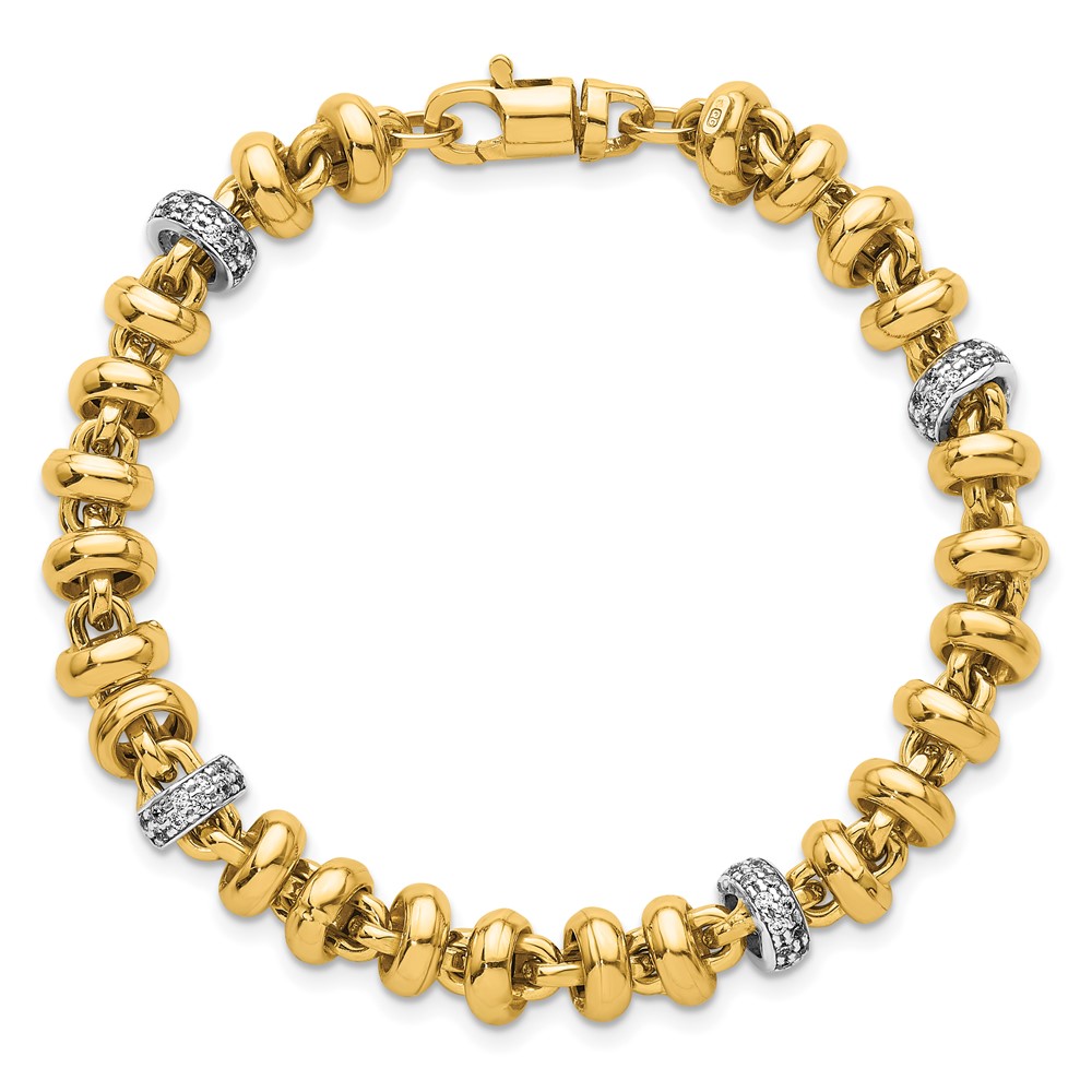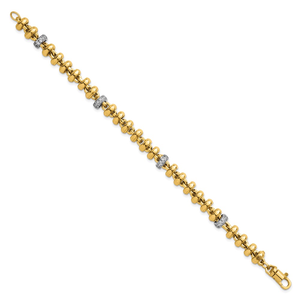 14k Two-tone Polished Fancy Link CZ 7.5 inch Bracelet
