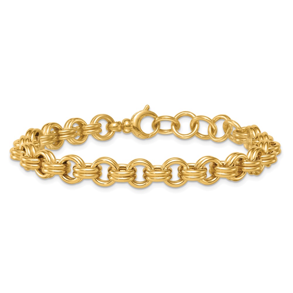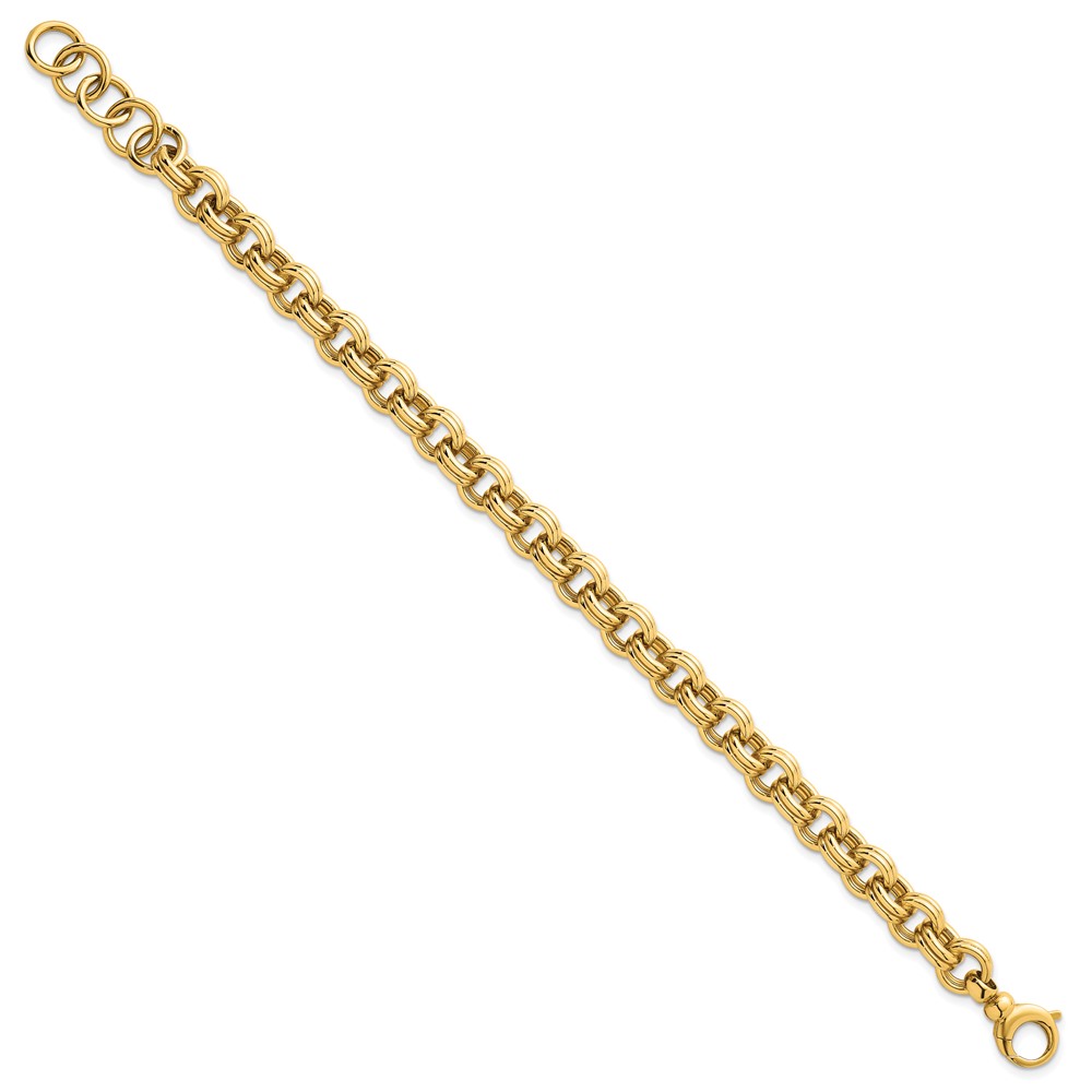 14k Polished 8.5mm Lightweight Double Link Cable 7.5 inch Bracelet Plus 0.75 inch Extender