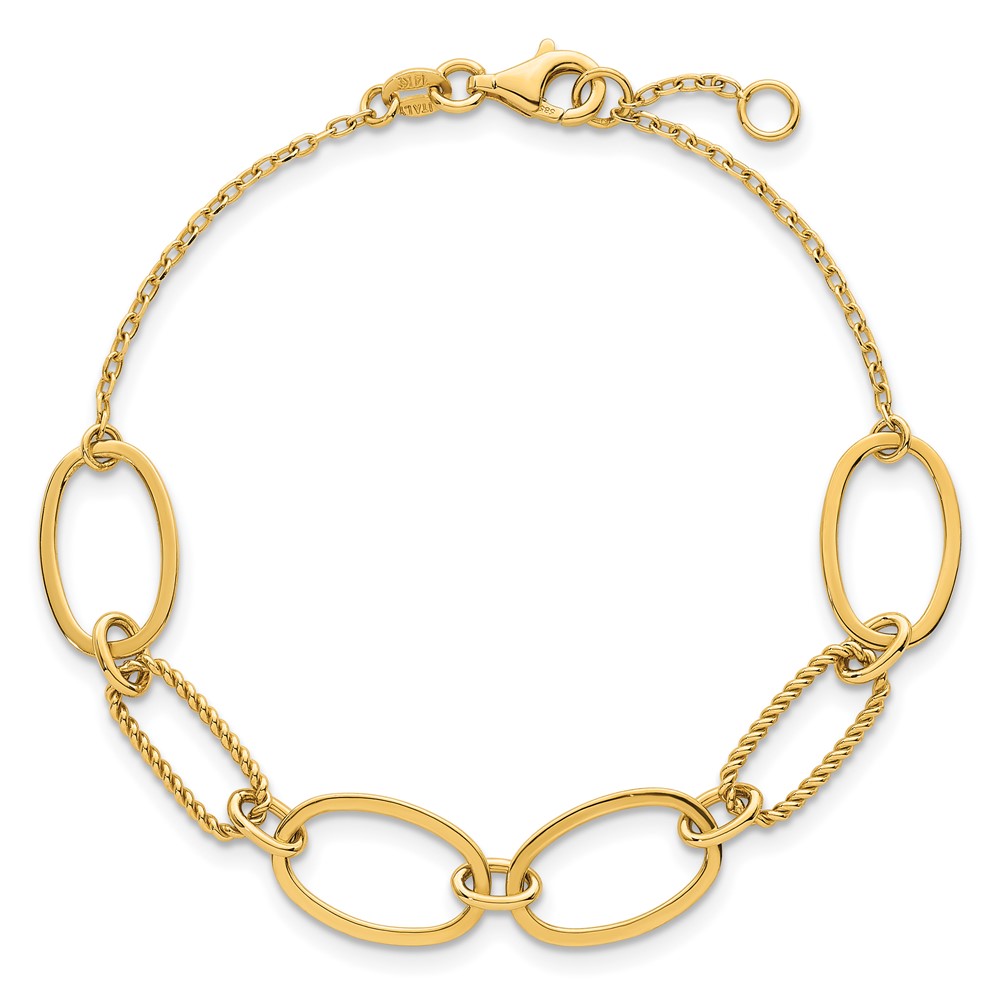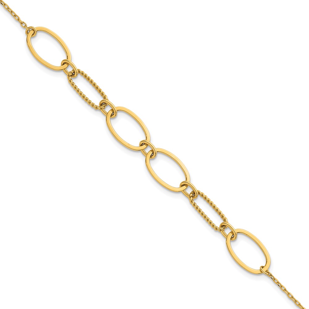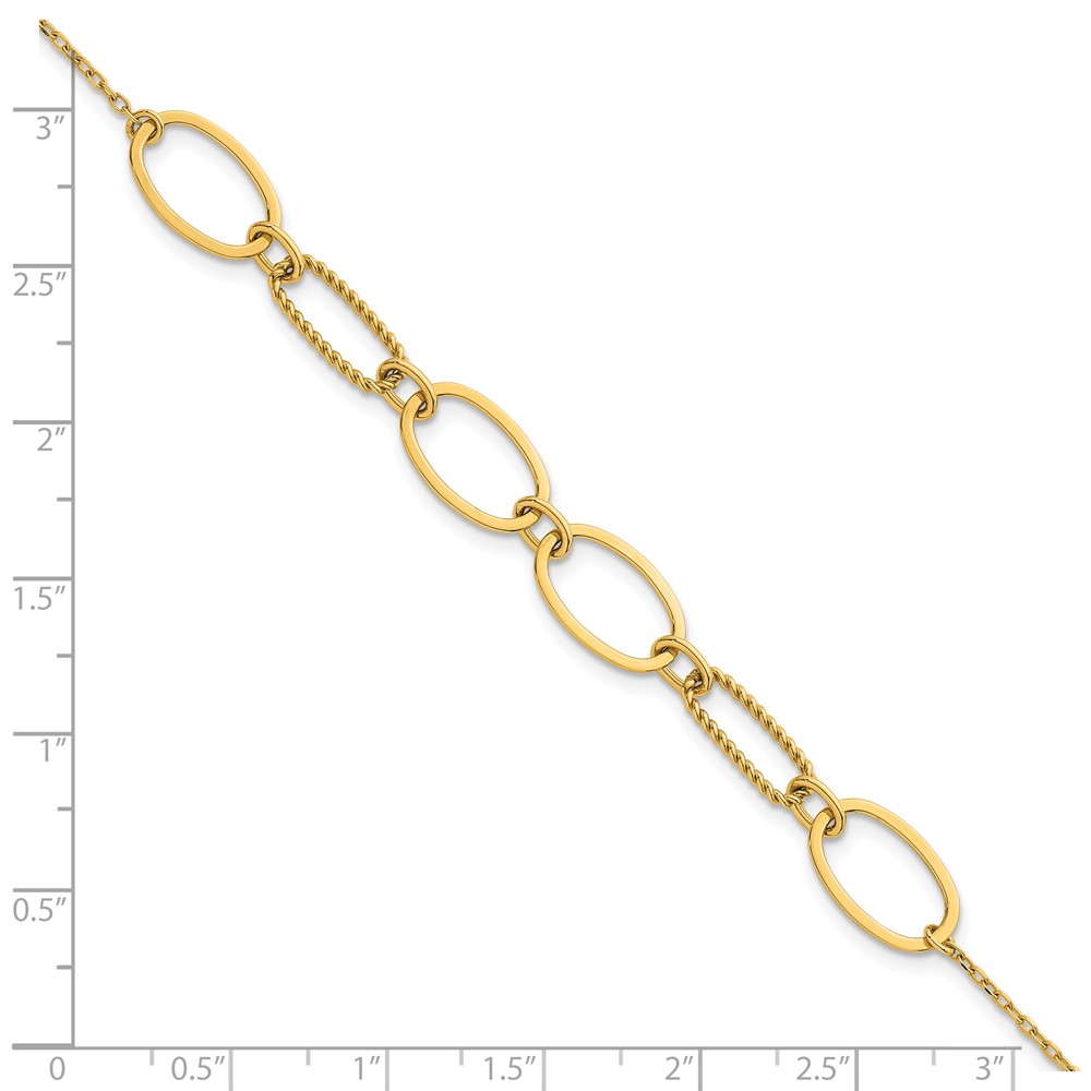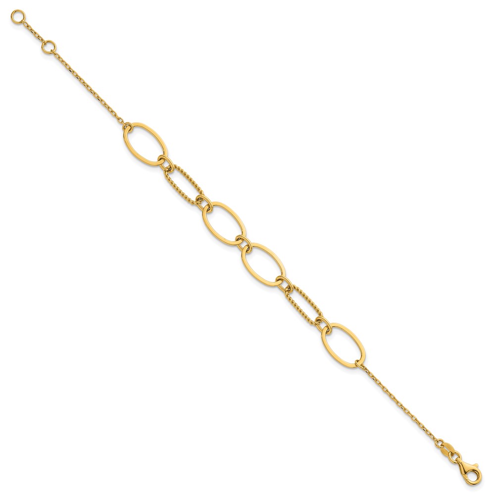 14k Polished And Twisted 9.5mm Oval Links 6.75 inch Bracelet Plus 0.5 inch Extender