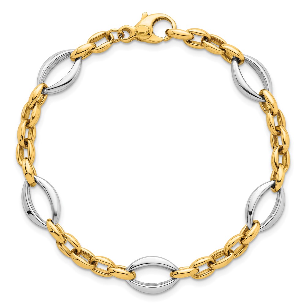 14k Two Tone Polished Oval and Cable Chain 7.25 inch Bracelet