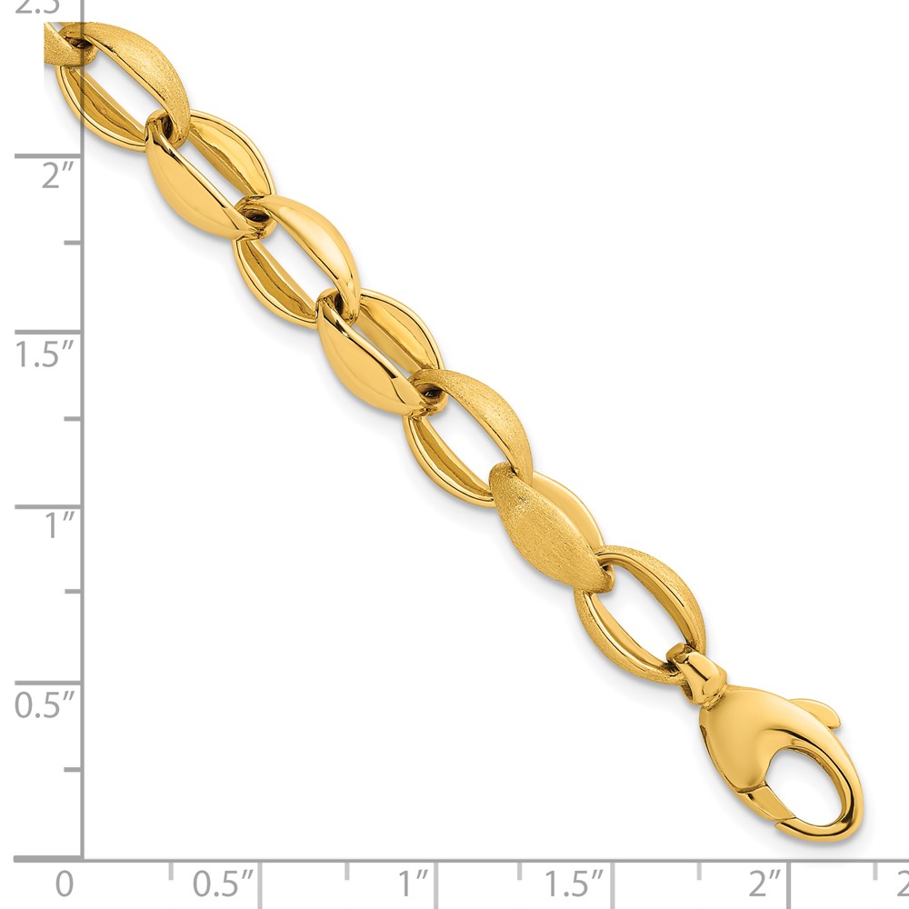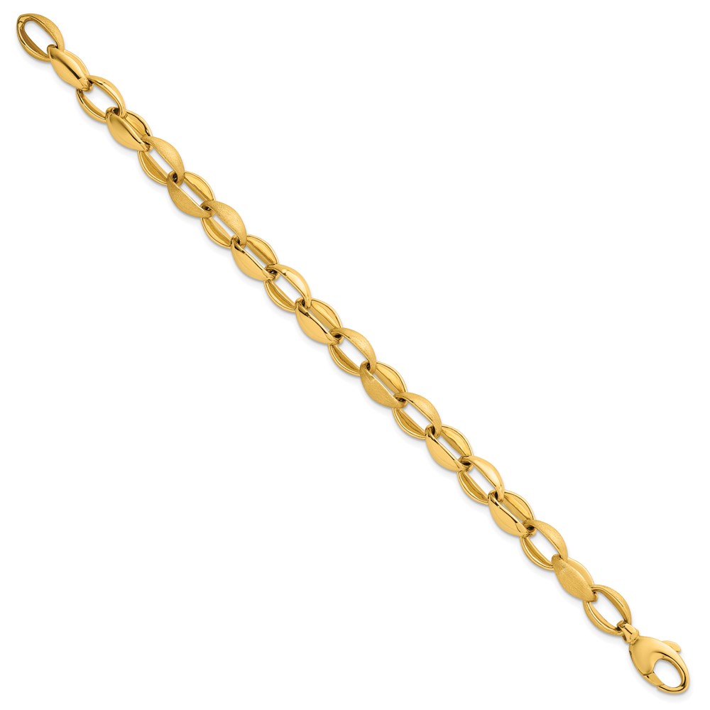 14k Polished And Brushed 8.1mm Fancy Oval Cable Link 7.25 inch Bracelet