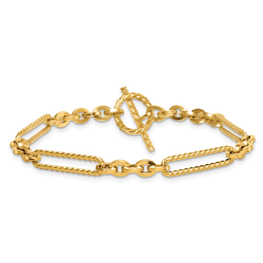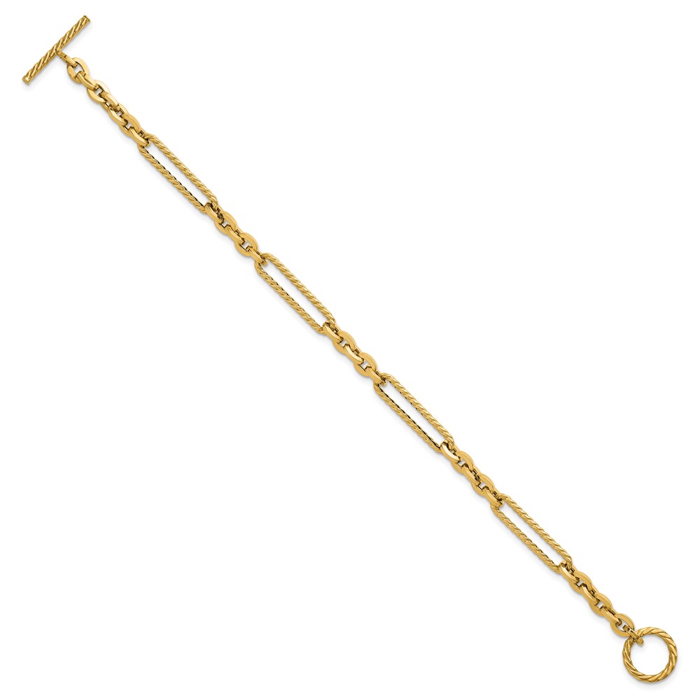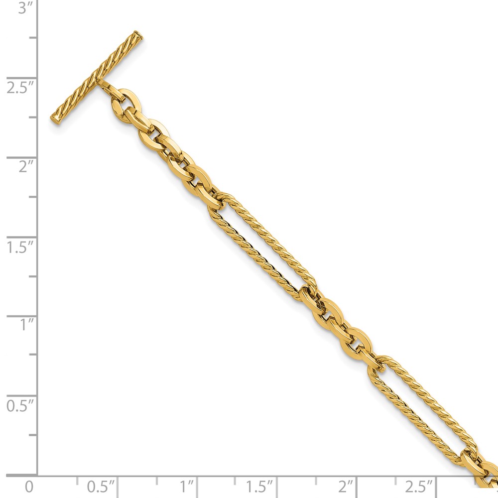 14K Polished and Textured Fancy Link with Toggle 7.5 inch Bracelet