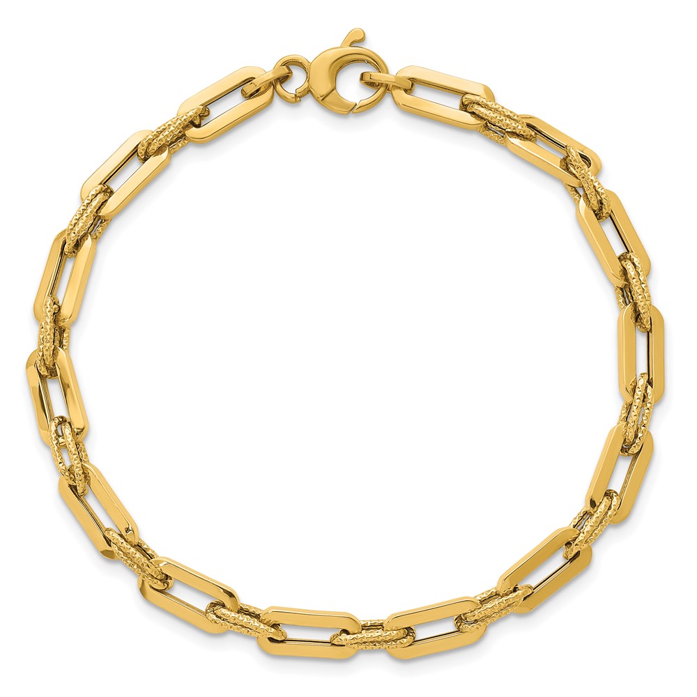 14K Polished 4.3mm and Textured Double Fancy Link 7.75 inch Bracelet