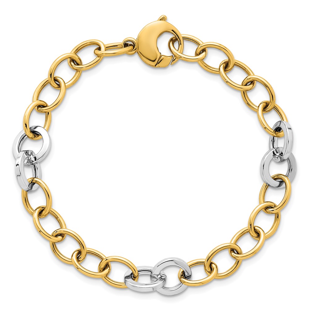 14k Two-tone Polished 9.75mm Fancy Circle Cable Chain 7.5 inch Bracelet