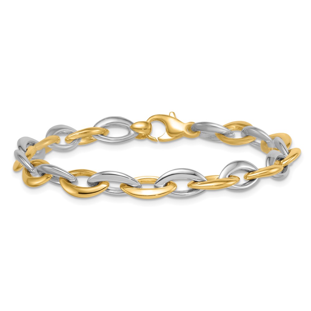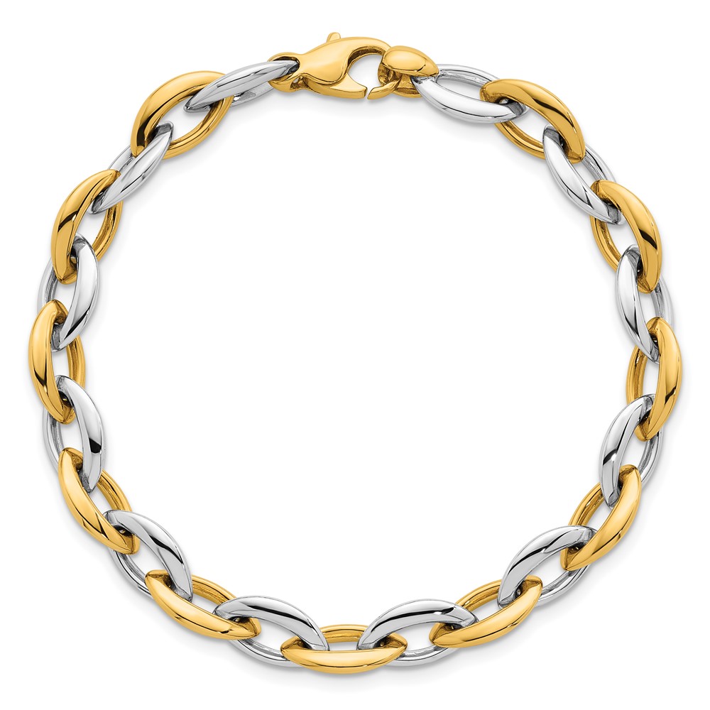 14k Two-tone Polished 7mm Oval Link 7.25 inch Bracelet