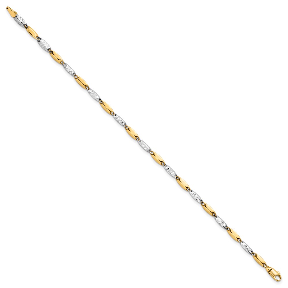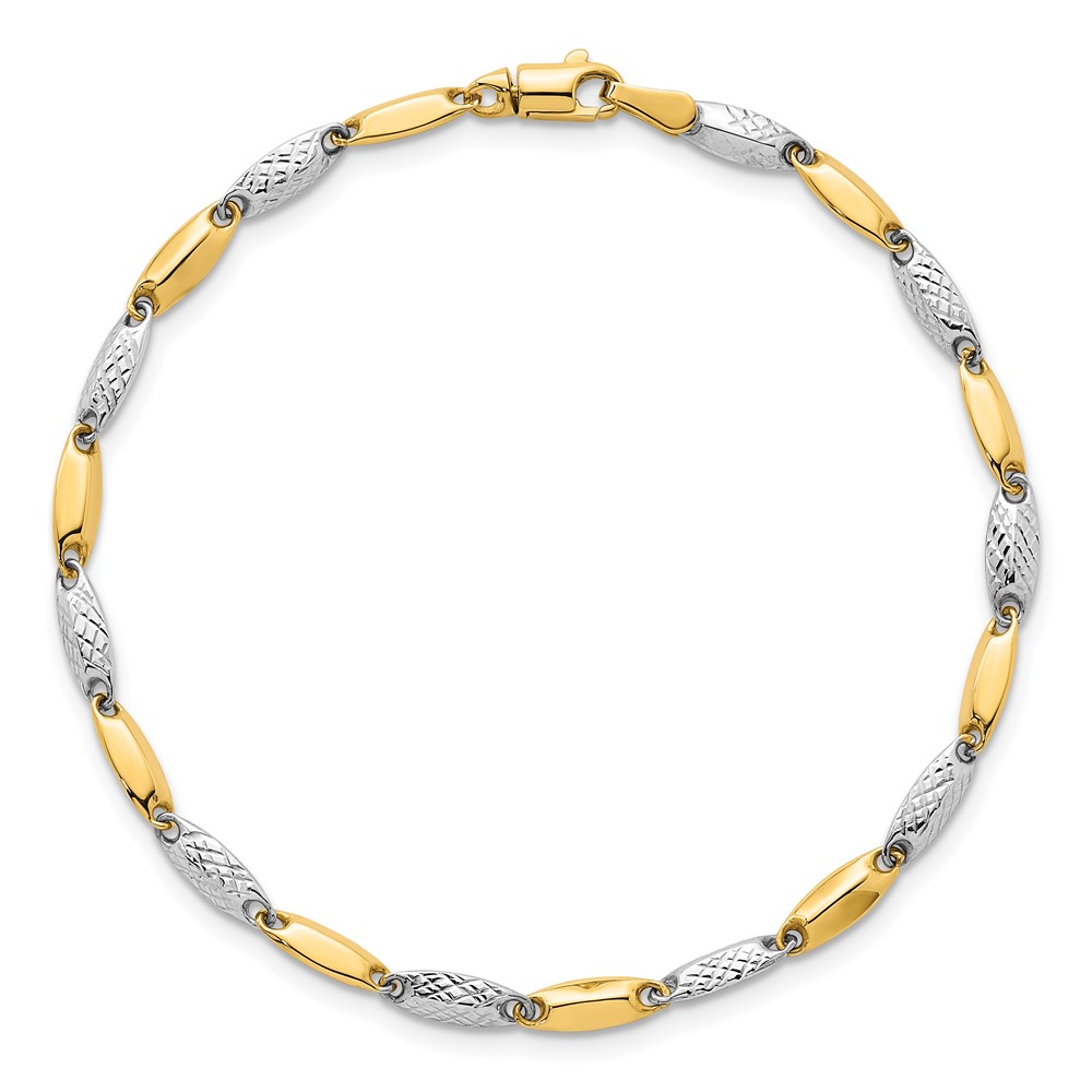 14k Two-tone Polished and Textured Fancy Marquise-shaped Link 7.5 inch Bracelet