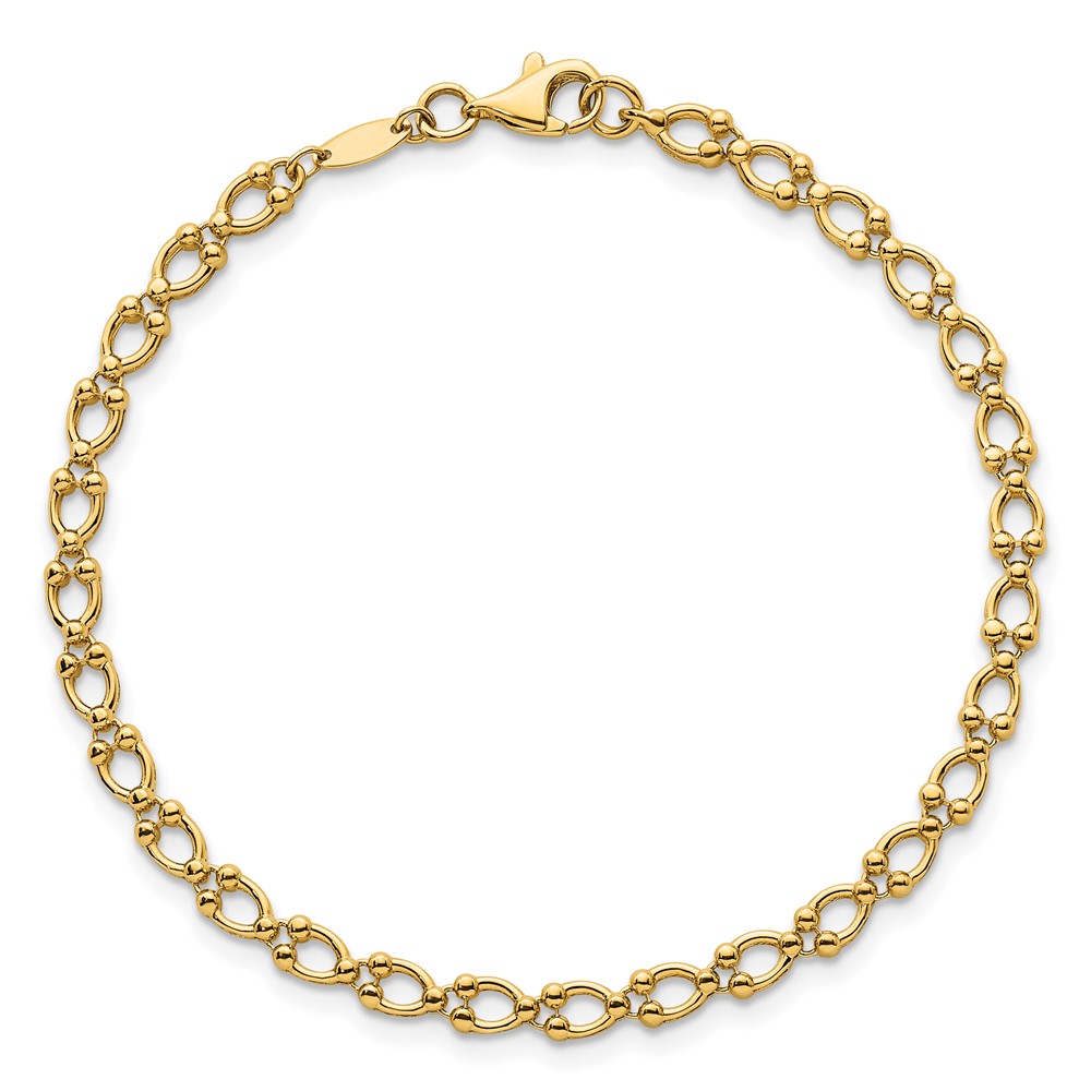 14k Polished Fancy Beaded Link 7 inch Bracelet