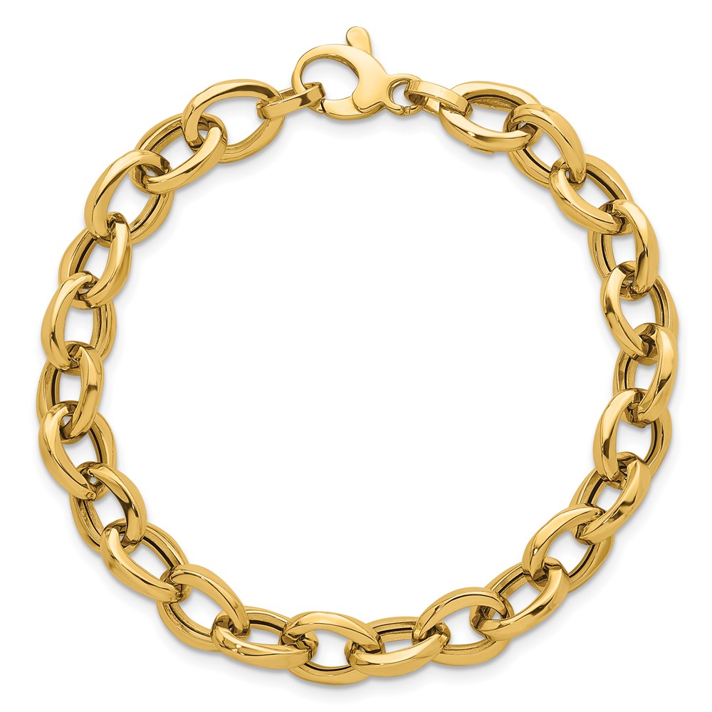 14k Polished 7.8mm Fancy Oval Cable Link 7.5 inch Bracelet
