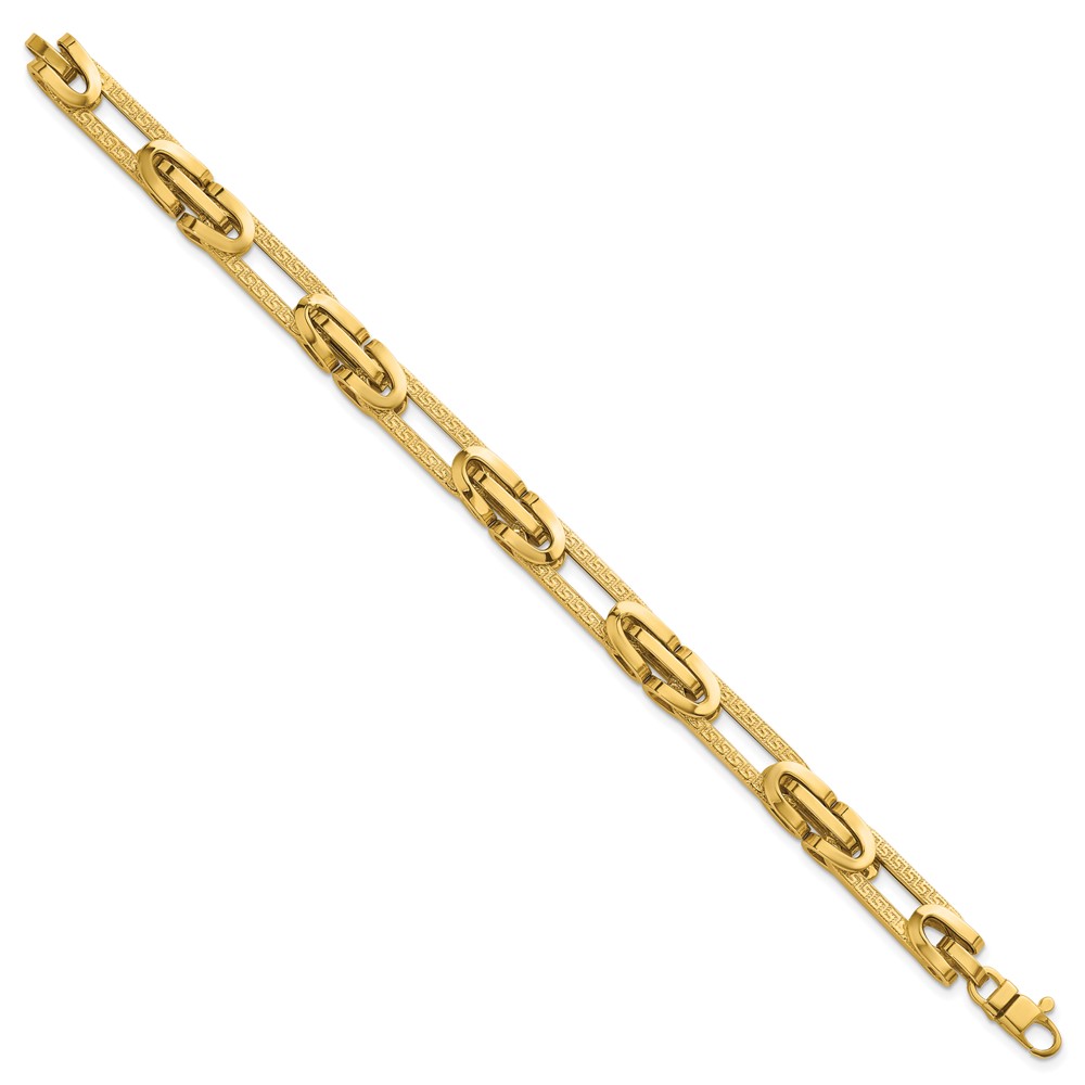 14k Polished and Textured 7.6mm Fancy Greek Key Design Oval Link 7.25 inch Bracelet