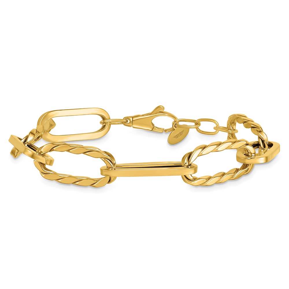 Herco 14K Polished and Twisted 9mm Oval Link 7.5 Inch with .5 Inch Extension Bracelet