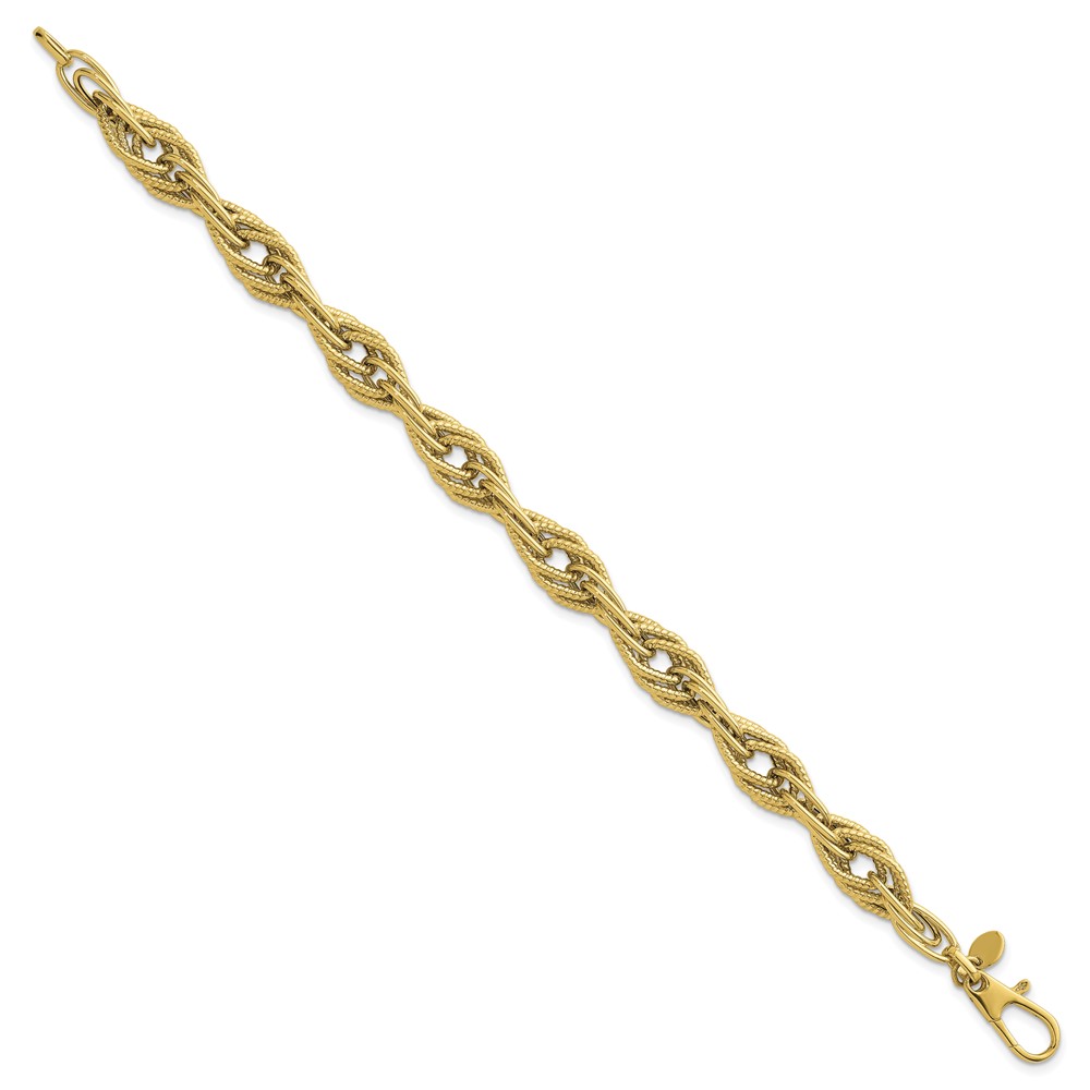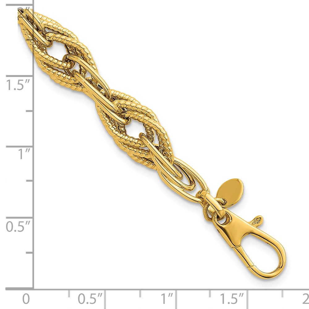 Herco 14K Polished Textured Fancy Tri-Link 7.75 Inch Bracelet