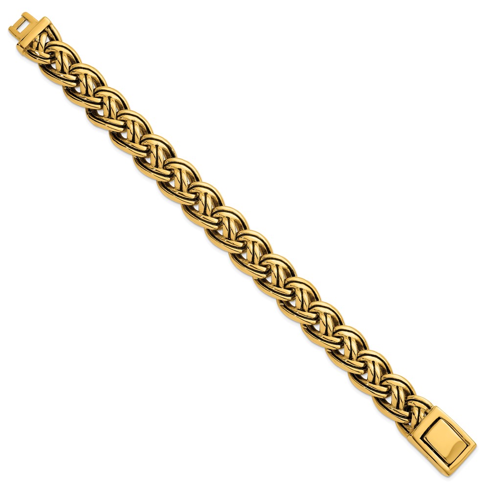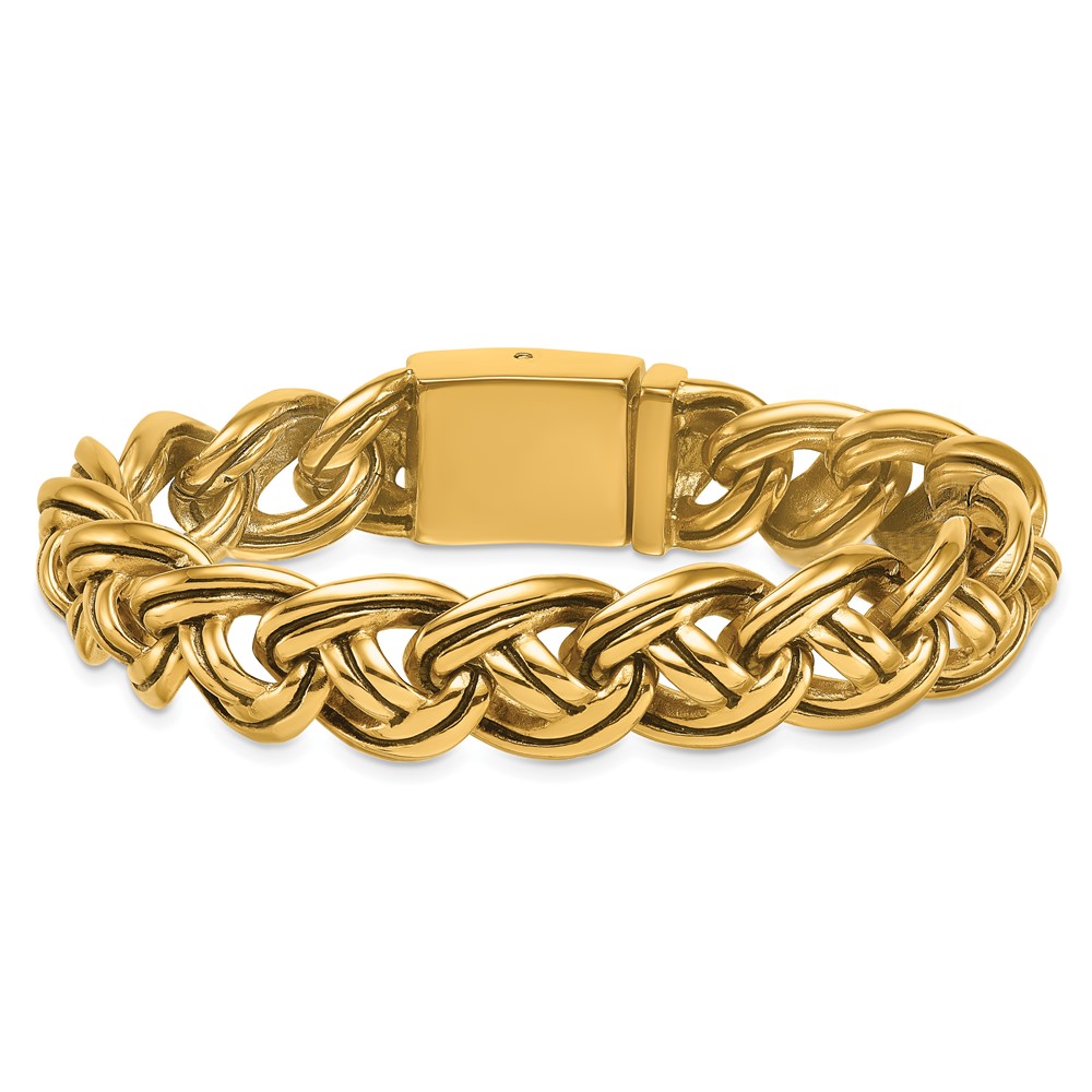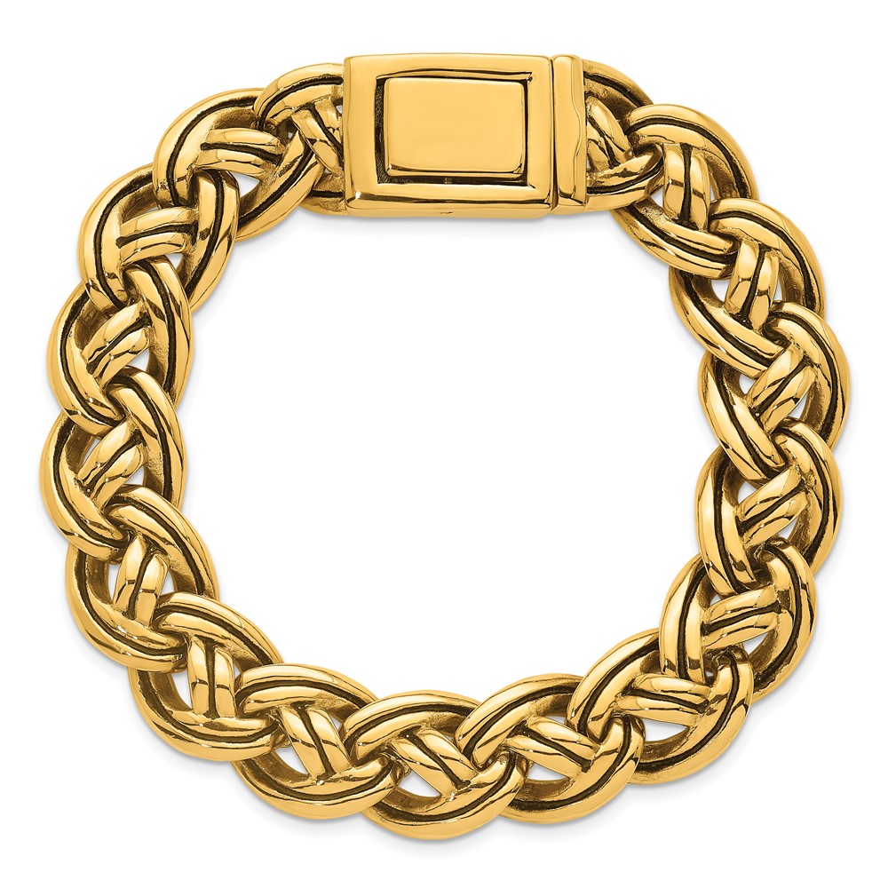 Stainless Steel Antiqued/Polished Yellow IP Fancy Link 8.5in Bracelet