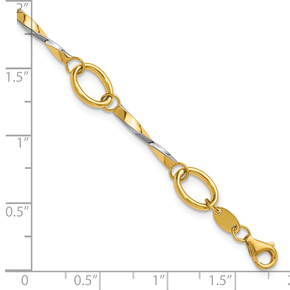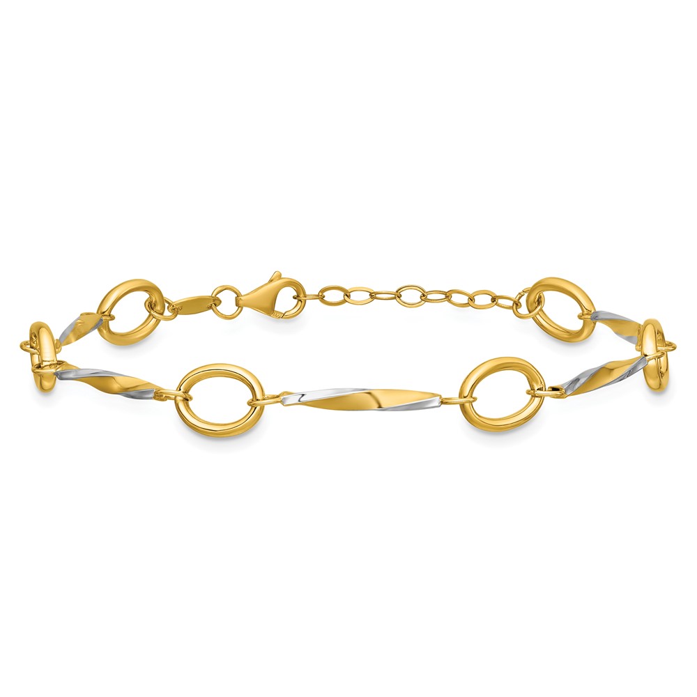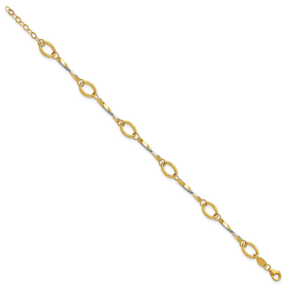 Leslie's 10K w/White Rhodium Polished 6.5in w/1in ext. Fancy Link Bracelet