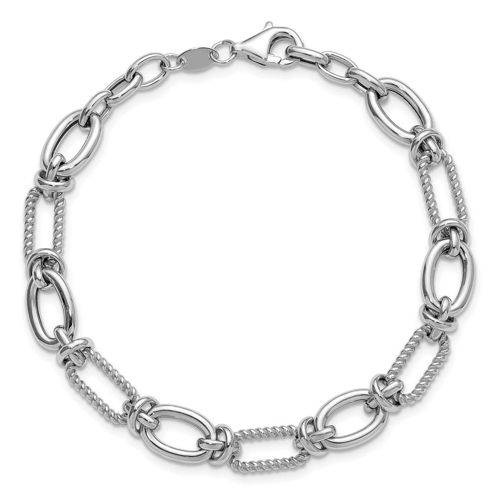 Leslie's 14K White Gold Polished and Twisted Fancy Link Bracelet