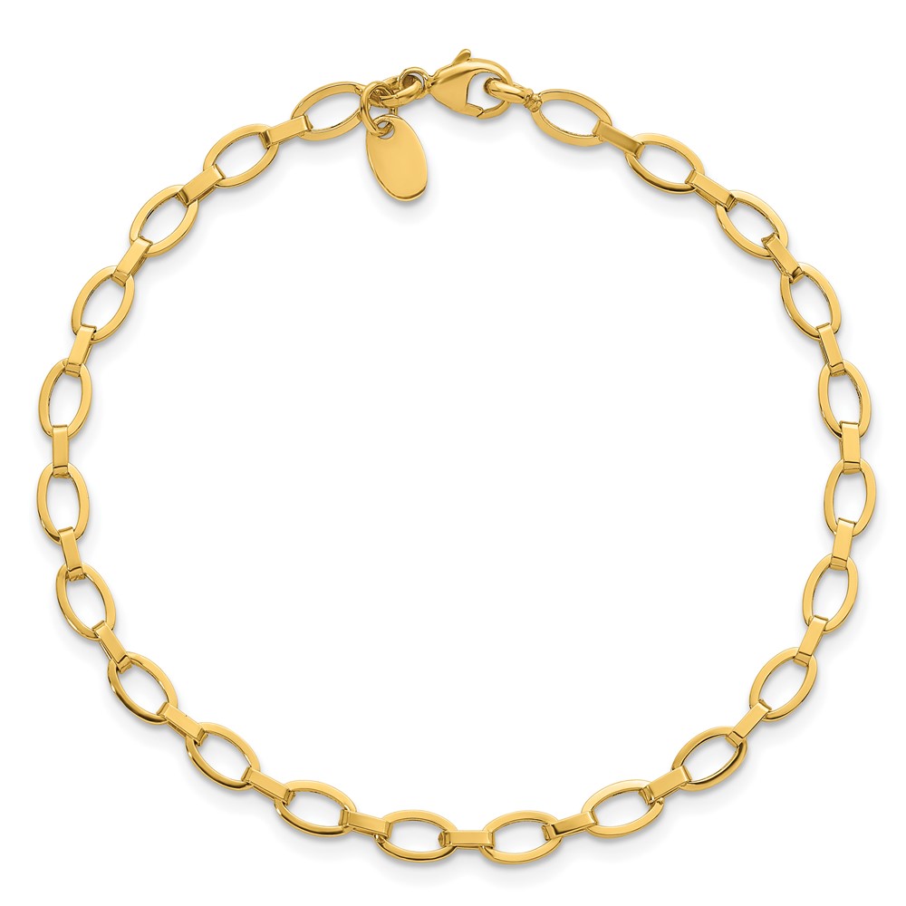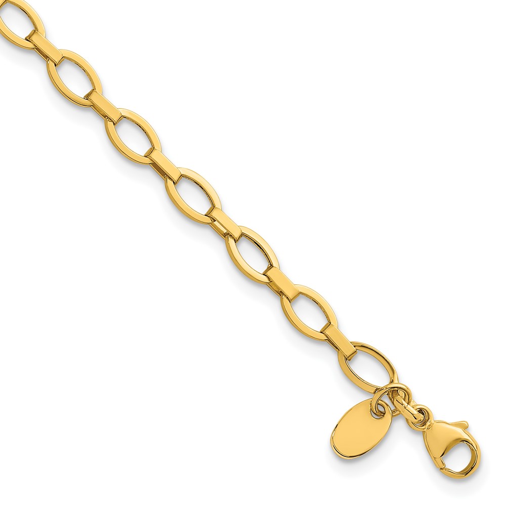 14k Two-tone Polished 6.5mm Fancy Cable Chain and Filigree Oval 7.25 inch Bracelet