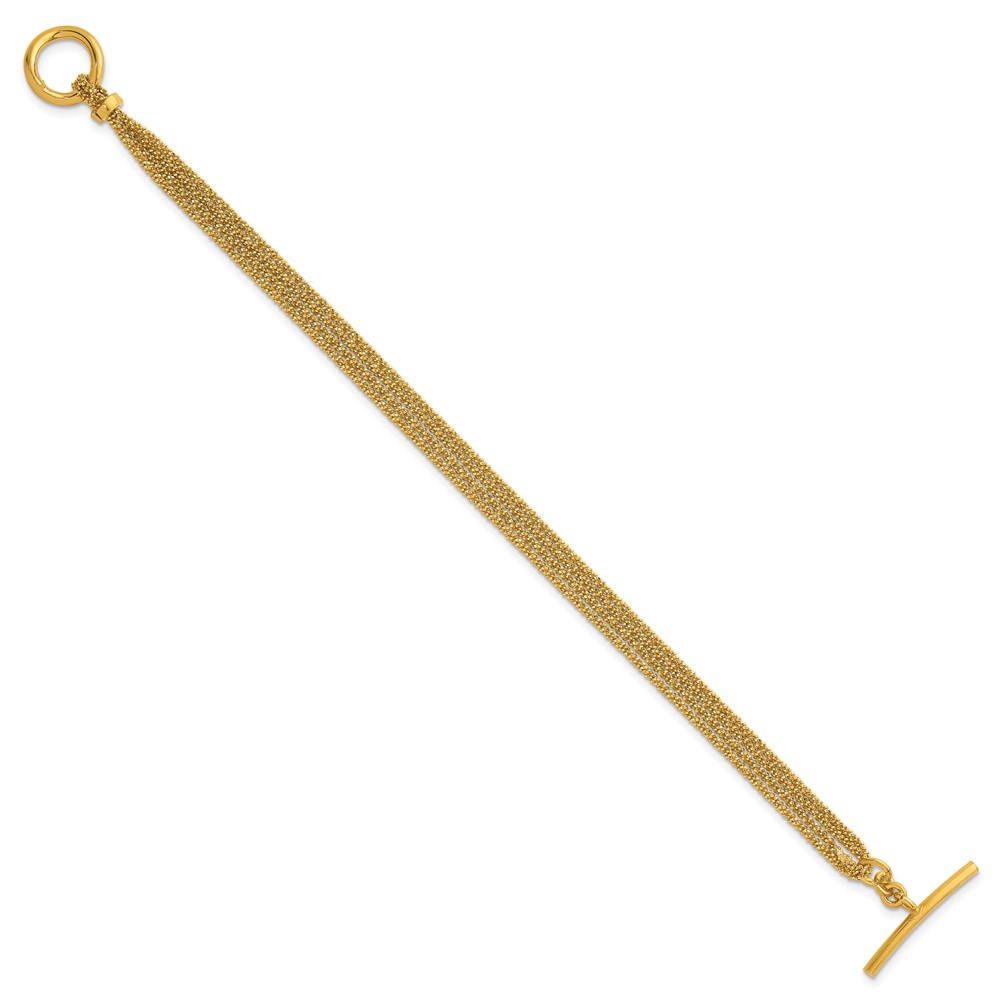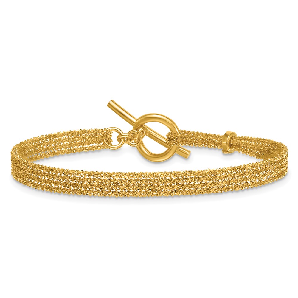 Leslie's Sterling Silver Gld-tone Polish/Dia.-cut 4-strand Toggle Bracelet