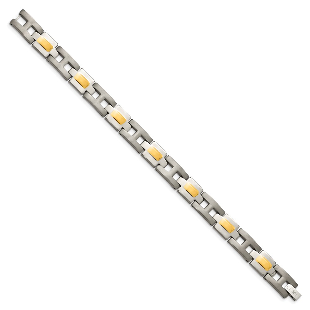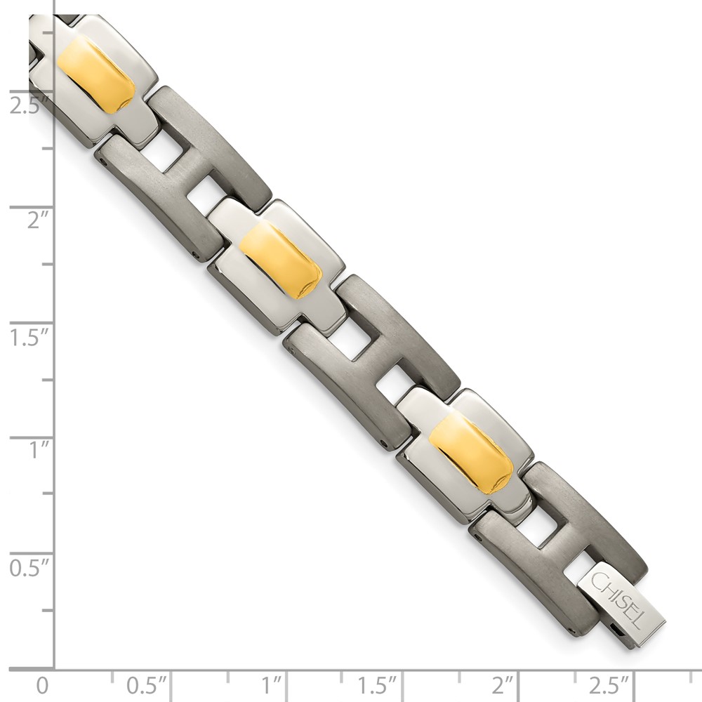 Chisel Titanium Brushed and Polished Yellow IP-Plated 9 inch Bracelet